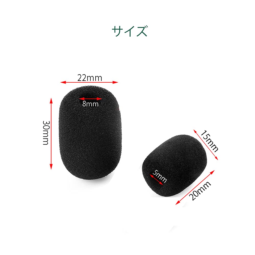 マイクスポンジ 20個セット 内径5mm/8mm ヘッドセット インカム ピンマイク 雑音防止 ピンマイク 用 ミニ 黒