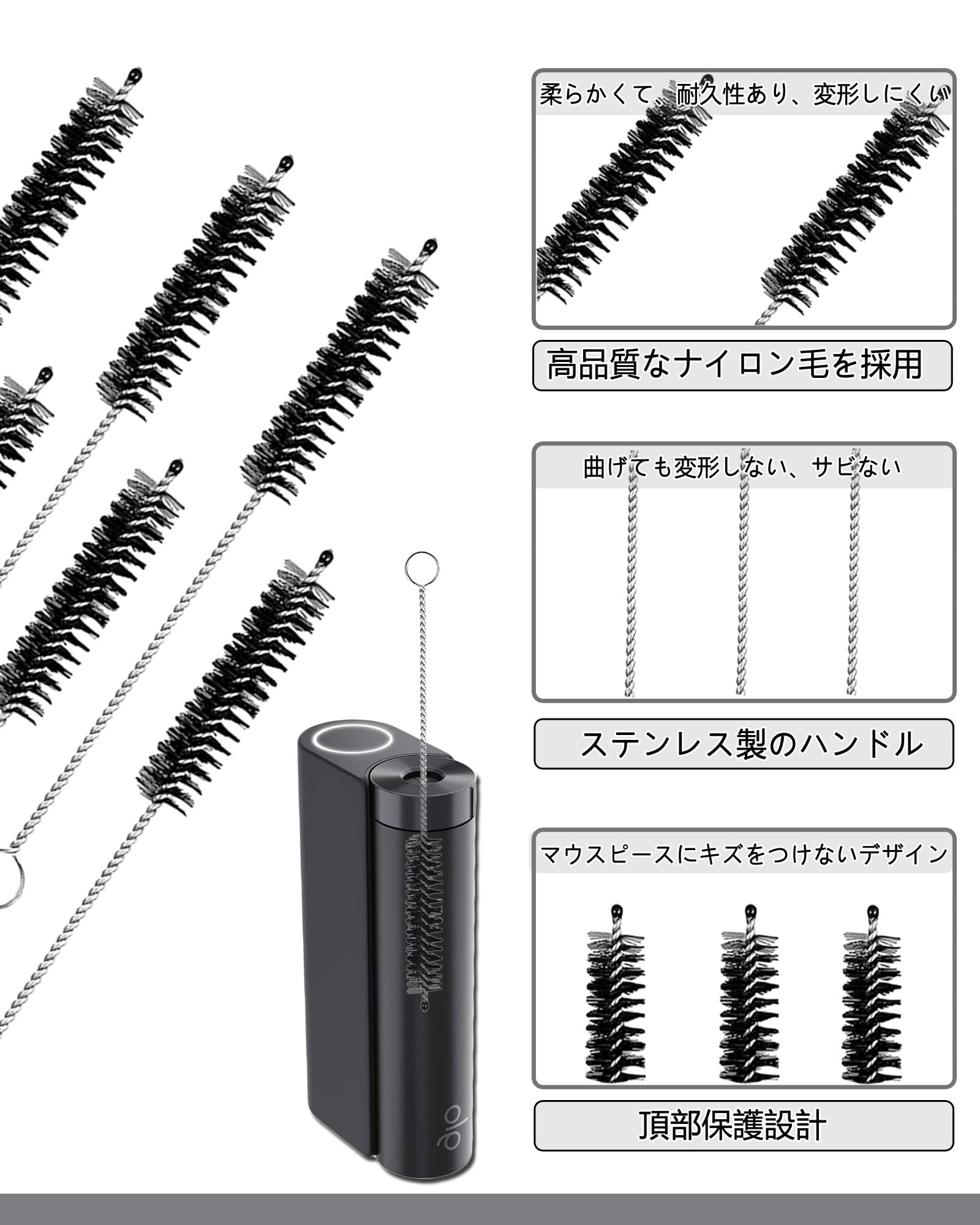【対応機種】グローハイパーX2およびX2エアに完璧に適合。glo専用のクリーニングブラシで、しっかりと汚れを除去。ウェットタイプ綿棒が付属しており、心配していた液だれもなく、ブラシだけでは取り切れない「焦げ」「汚れ」「臭い」がきっちり取れます。