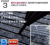 ●優れた吸水性能で、雨天時でも屋内を清潔に保ってくれます。 ・裏地には厚いシートを採用し、縁が波打ちしにくくなっています。