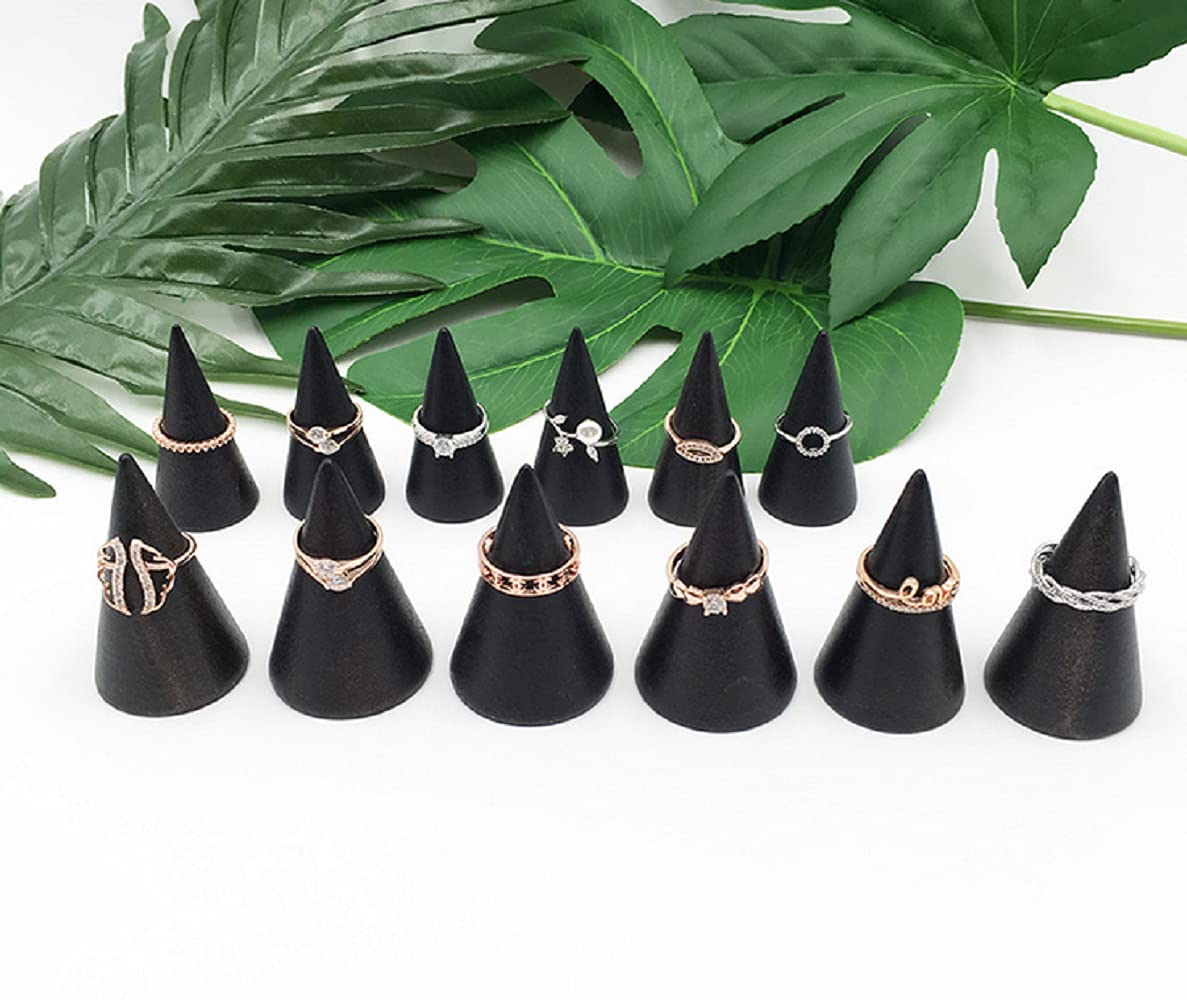 desikaky リングスタンド 指輪置きケース ジュエリースタンド 木製 円錐形 リングホルダー 指輪立て 指輪の保管 アクセサリー 展示用 DIY 手芸品 (ブラック 20個セット)