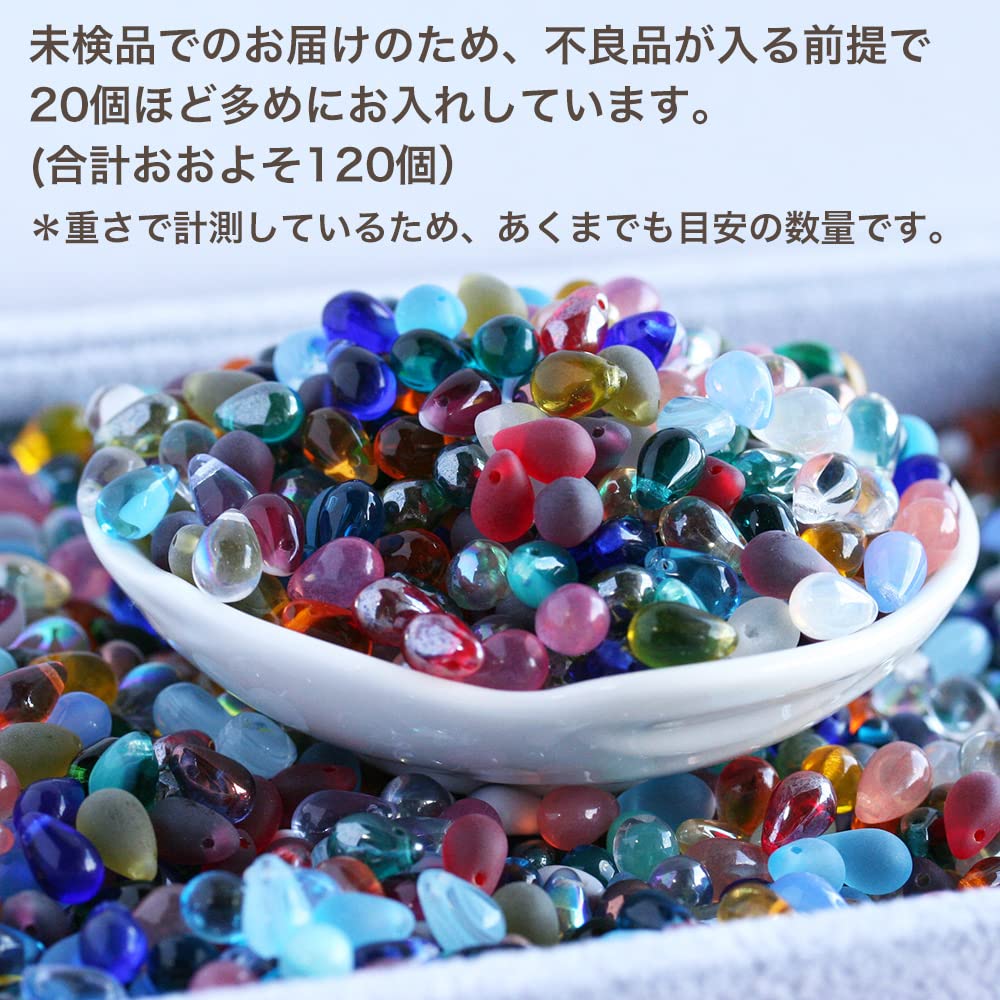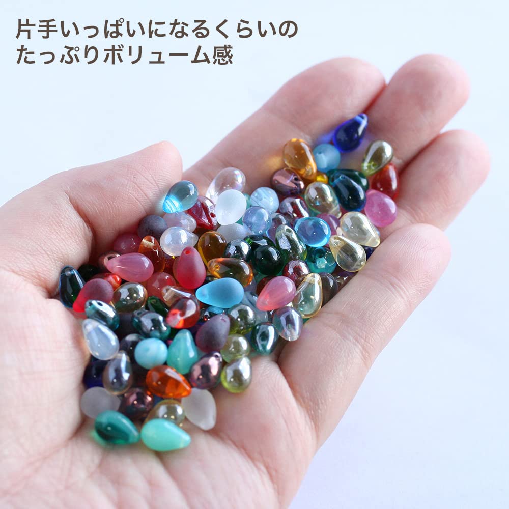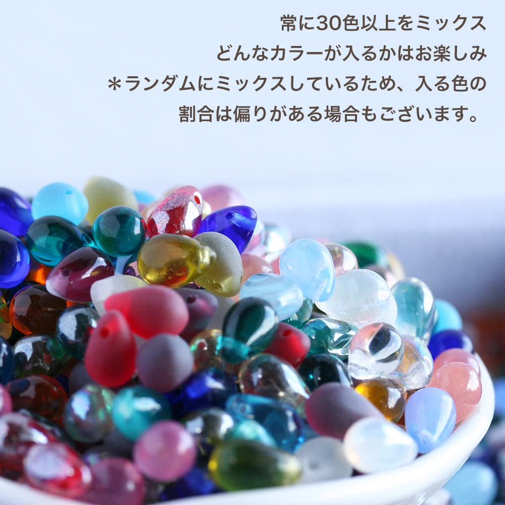 チェコガラスビーズのドロップ9×6mmおよそ100個をランダムカラーでセットにしたアソート商品