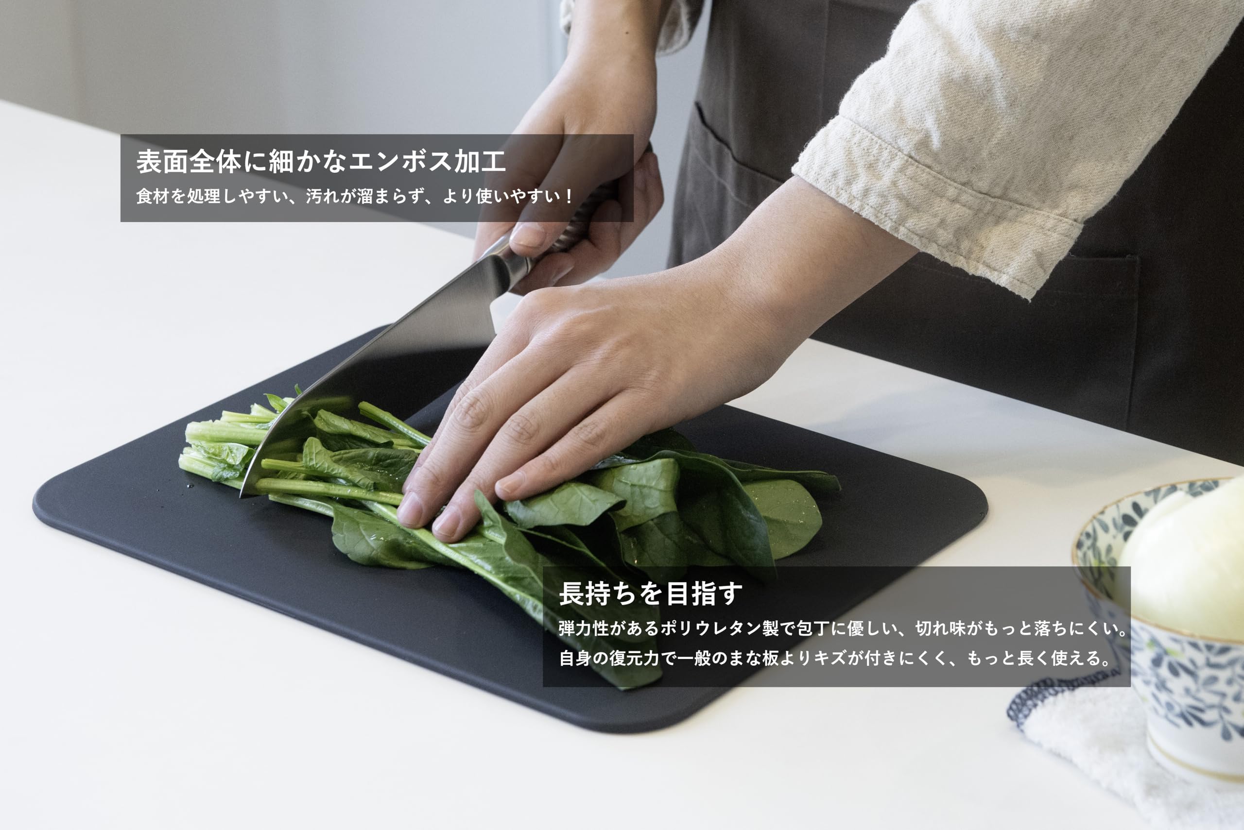 【弾力性とデザインしたテクスチャ】高品質と弾力性あるのTPU素材と特化したテクスチャデザインで、刃当たりが柔らかく、包丁キズが残りにくく、包丁がもっと長く利用できる。また、包丁の切る音が静かく、食材ももっと滑りにくい、作業が簡単になりました。