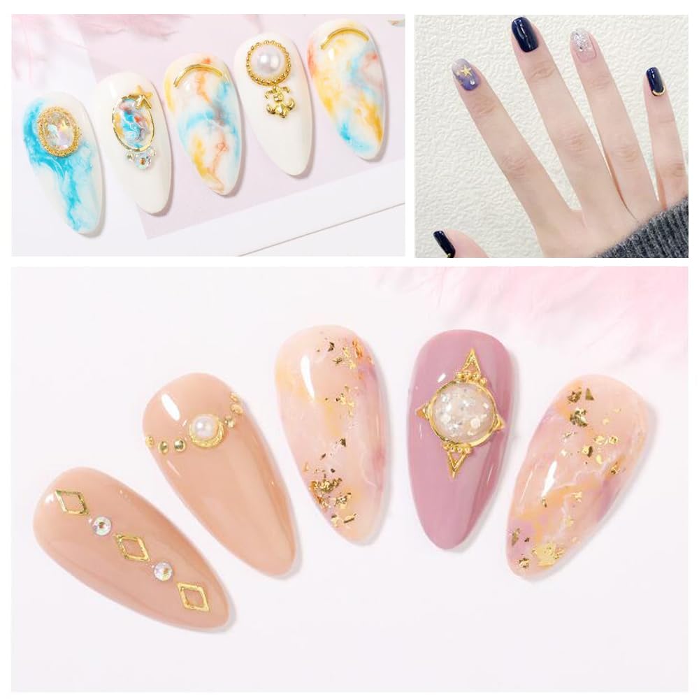 ネイルパーツ 3本セット 金属パーツ ネイルデザイン アクセサリー デコパーツ 四角 三角 丸 パール フレークパーツ ネイルアート ネイルスタッズ ネイル デコレーション ゴールドネイルパーツセット (B)