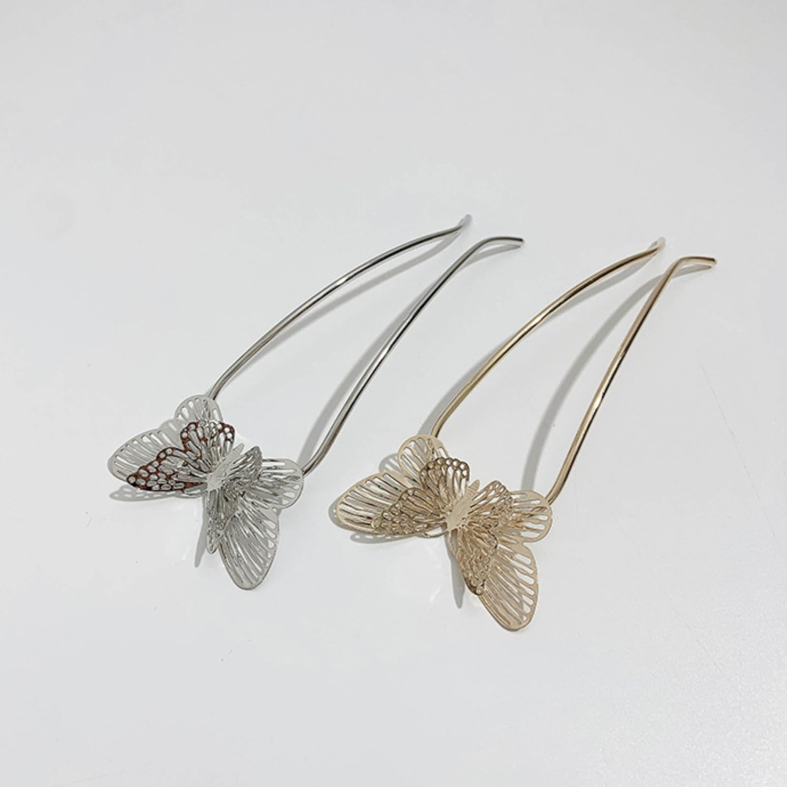 EZ PEACH 簪 かんざし 髪飾り 和装 Uコーム 合金ヘ 髪飾り かんざし 結婚式 着物 成人式 発表会 (蝶/Silver)