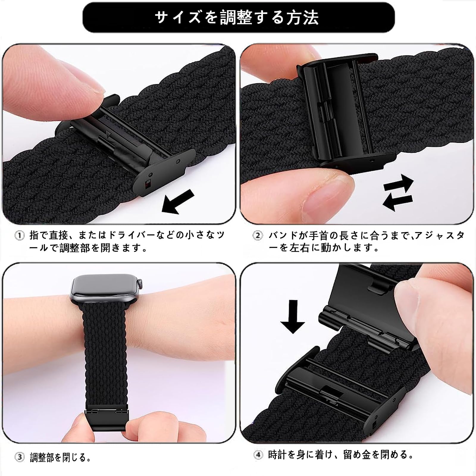 【在庫処分】コンパチブル Apple Watch バンド ブレイデッドソロループ 伸縮バンド ナイロン素材 無段階調整 快適で通気性 のスポーツベルトアップルウォッチシリーズ 10 9 8 7 6 5 4 SE Ultraに対応 (49mm/46mm/45mm/44mm ブラック) | GIGATERA
