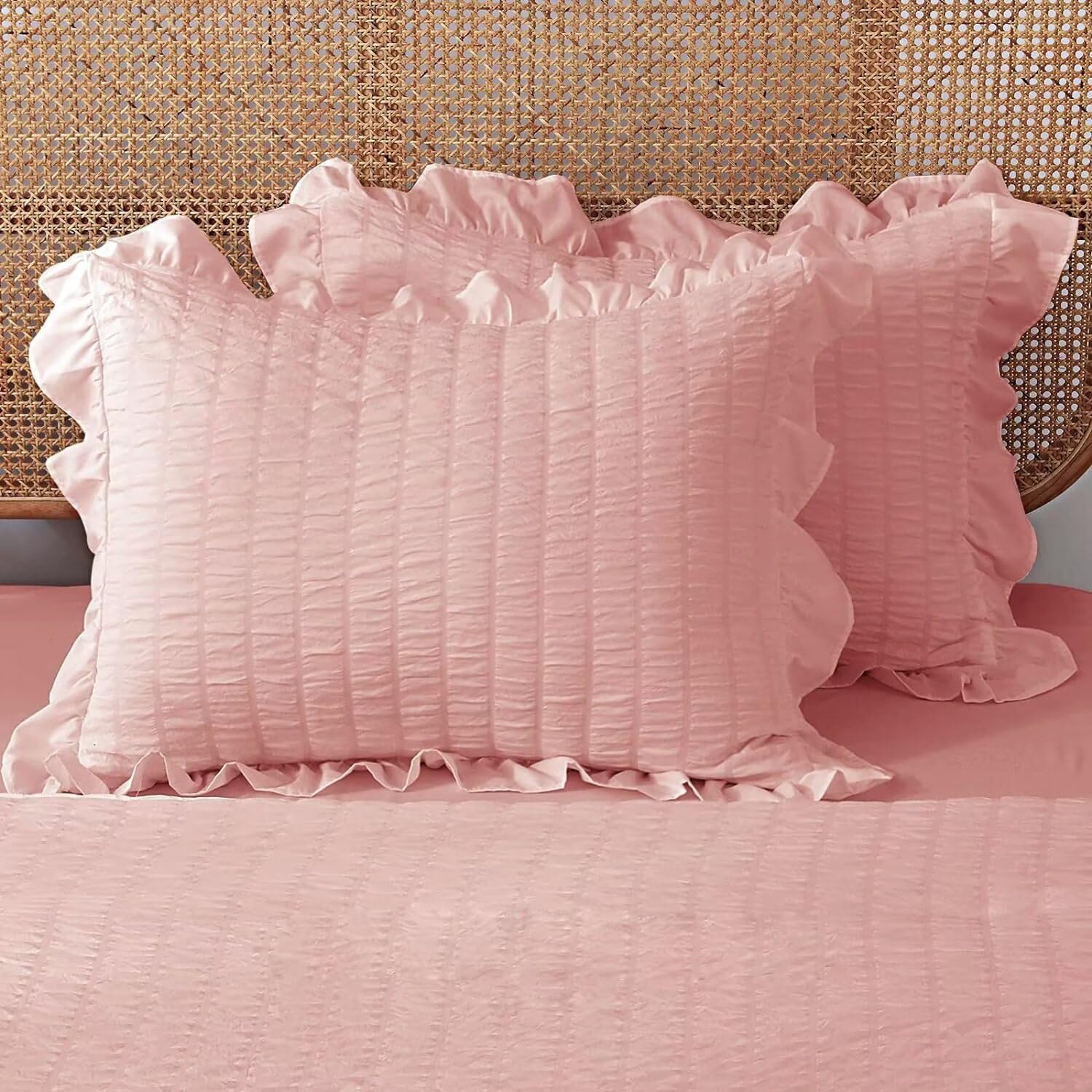 Hopeholic 枕カバー 2枚セット ピローケース 43x63 かわいい フリル シアサッカー生地 封筒式 まくらかばー 優しい肌触り 柔らかい 洗い替え 速乾タイプ ピーチスキン加工 四季通用 ピンク フリル