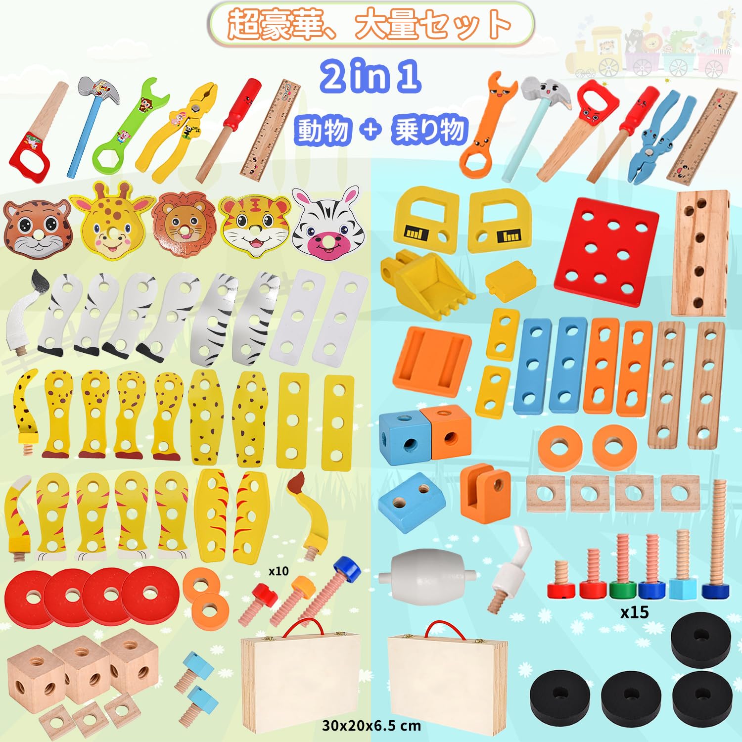 Jecimco 大工さん おもちゃ 木製 2in1 子供 知育玩具 DIY 組み立て おもちゃ セット 男の子 女の子 工具 ままごと ごっこ遊び 大工さんごっこ