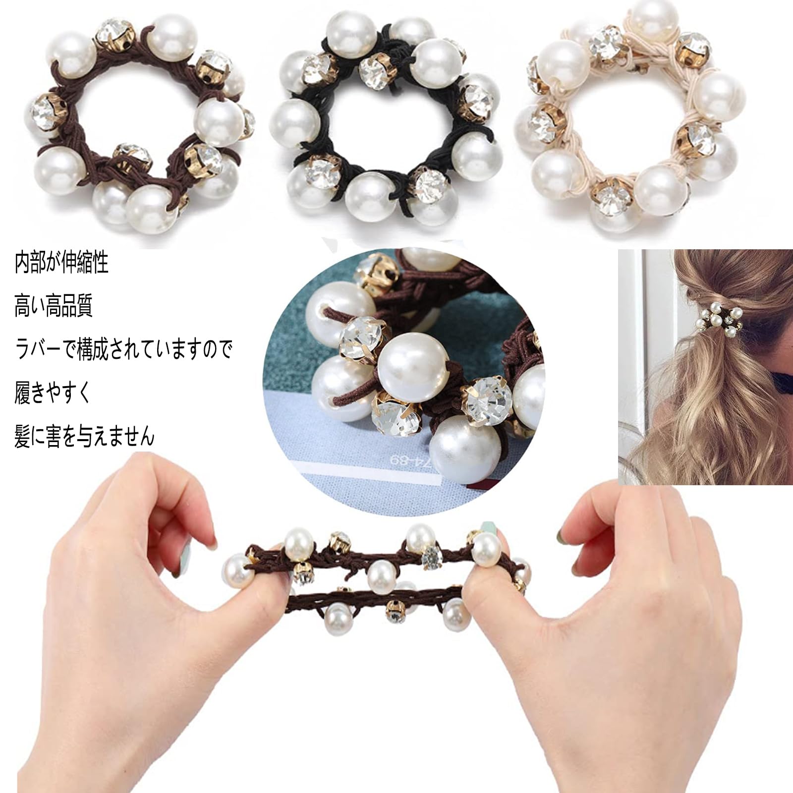 【セール】HAPVITAL ヘアゴム【3本セット】髪ゴム 髪飾り おしゃれ ヘアアクセサリー ヘアゴム ファッション オフィス 通勤 大人 シンプル トレンド 小物 っぽい シンプル トレンド おしゃれ かわいい ギフト (パールクリスタルデザイン) | GIGATERA
