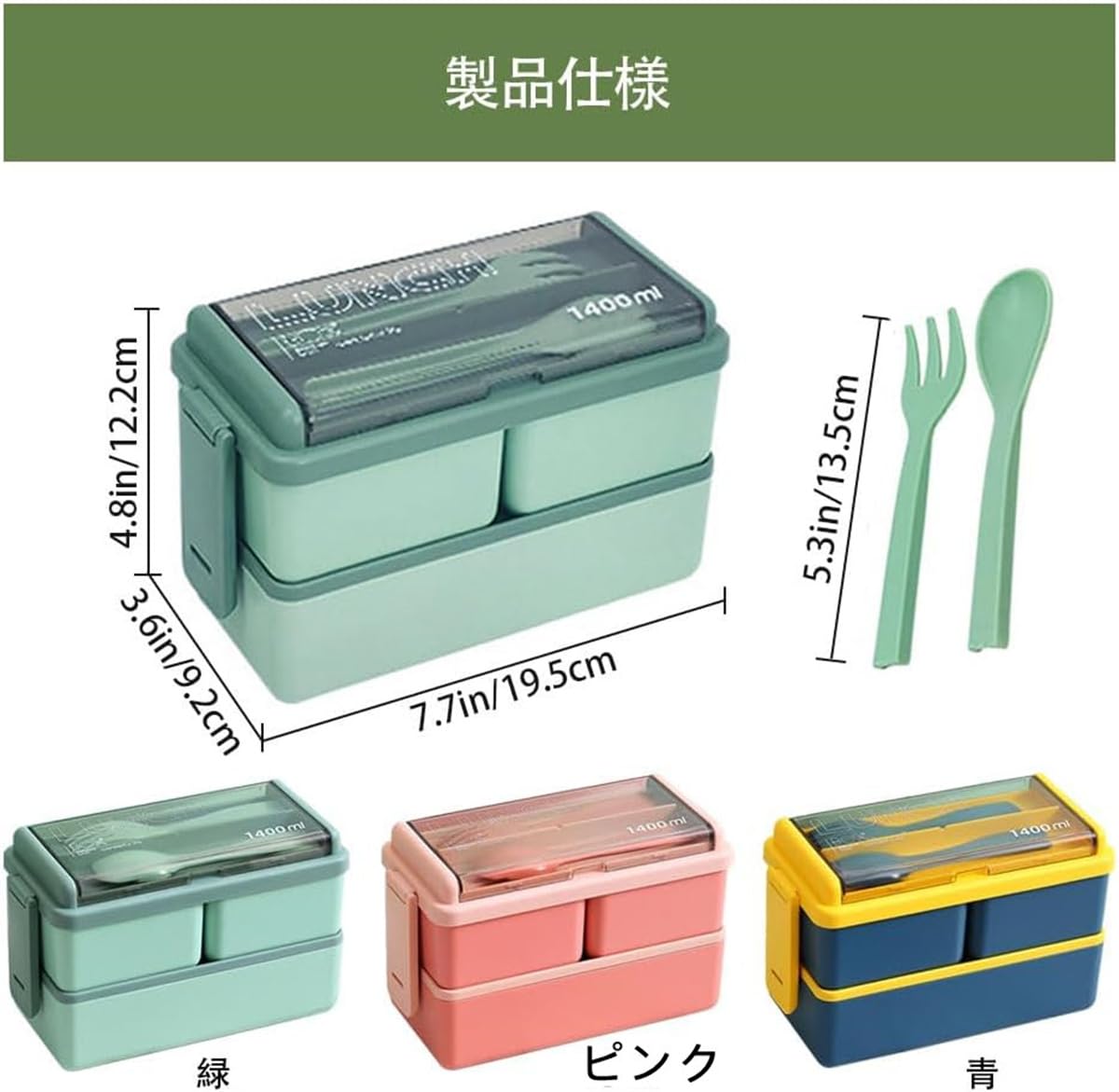 [EFFORTS]弁当箱 1400ml大容量 二段 お弁当箱 ランチボックス べんとう箱 レンジ ランチボックス二段 仕切付 食洗機 電子レンジ対応 女性 男性 高校生 通勤 漏れ防止 おしゃれ 軽量 子供用 学生 大人用 (ピンク, 19.5*9.2*12.2cm)