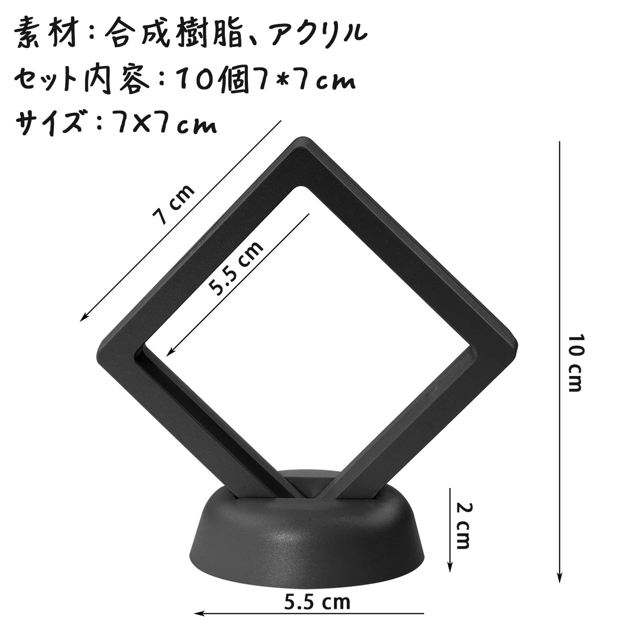 ルースケース アクセサリーケース 7x7cm 10個 セット ディスプレイケース コレクションケース 宝石 原石 フローティングフレーム 写真立て 透明フィルム バッジ収納 酸化防止 標本 アンティーク ピアス 指輪 台座付き (ブラック)