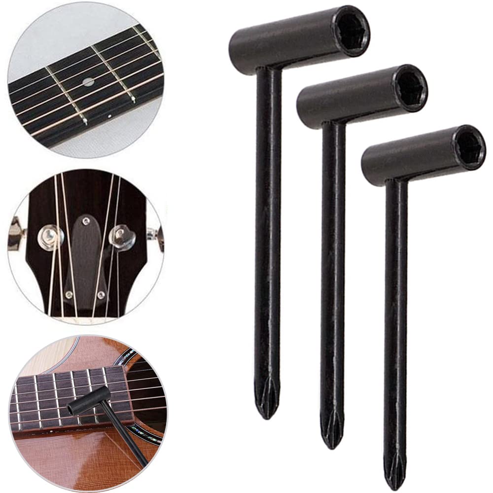 ギターパーツ ネック 3点セット 調整用 トラスロッド用パイプレンチ ギター修理に パイプレンチ 6角レンチ 高い耐摩耗性 ブラック (6.35mm 7mm 8mm)