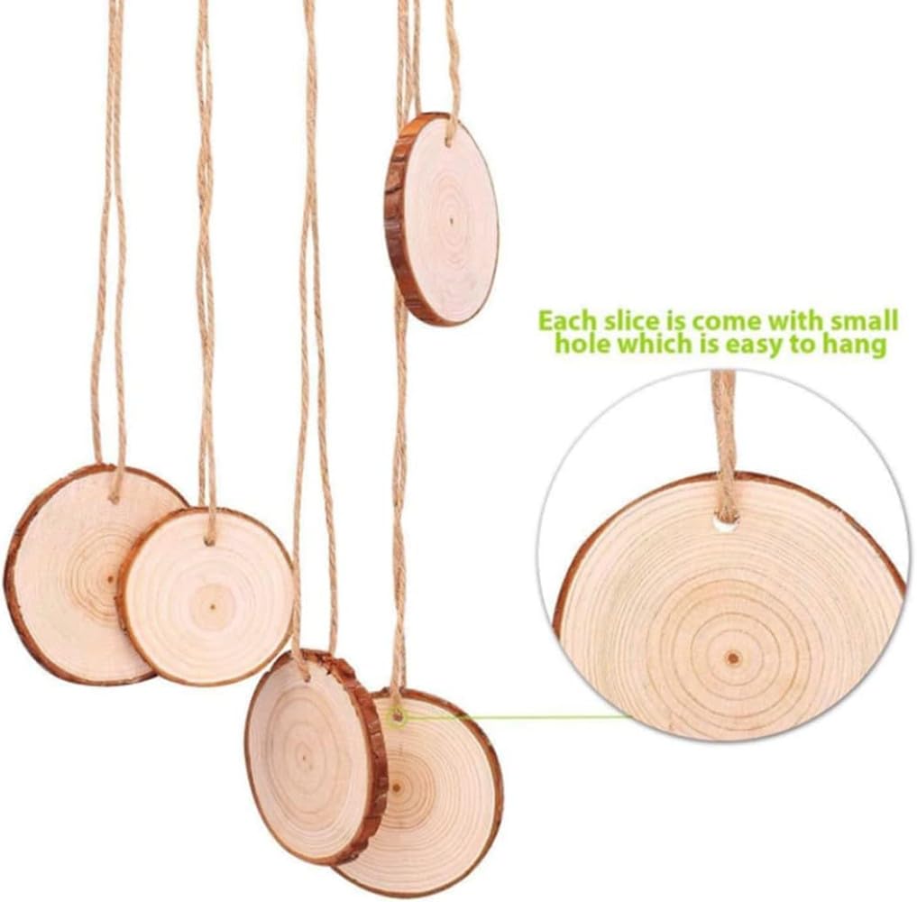 ?【デザイン】:滑らかな木の皿に書いたり、作ったり、絵を描くことができます。各ディスクには小さな穴があり、ぶら下がるのに便利です。各小包には10メートルの麻縄がある。これはあなたへの無料プレゼントです。