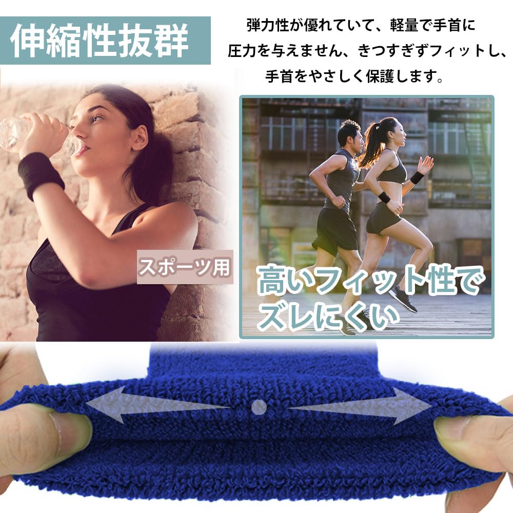 【吸汗性抜群】このリストバンドで運動する時、手首の汗を吸収するだけでなく、タオル代わりに顔の汗を拭き取りでき、非常に便利です。また、手腕の皮膚のドライをキープする効果があります。