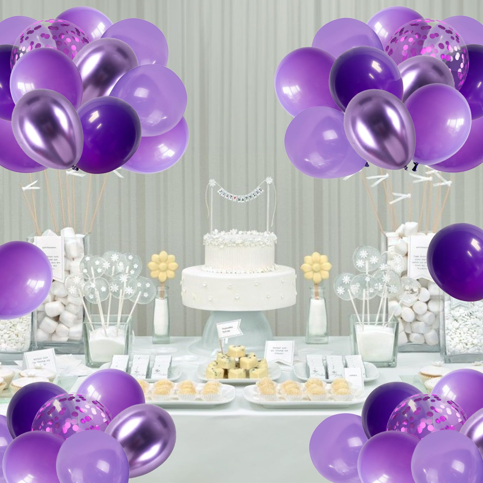 ??【バルーンセット内容】バルーン50個(カラー:パープル)、バルーンチェーン1巻、粘着シール1枚、リボン1巻。