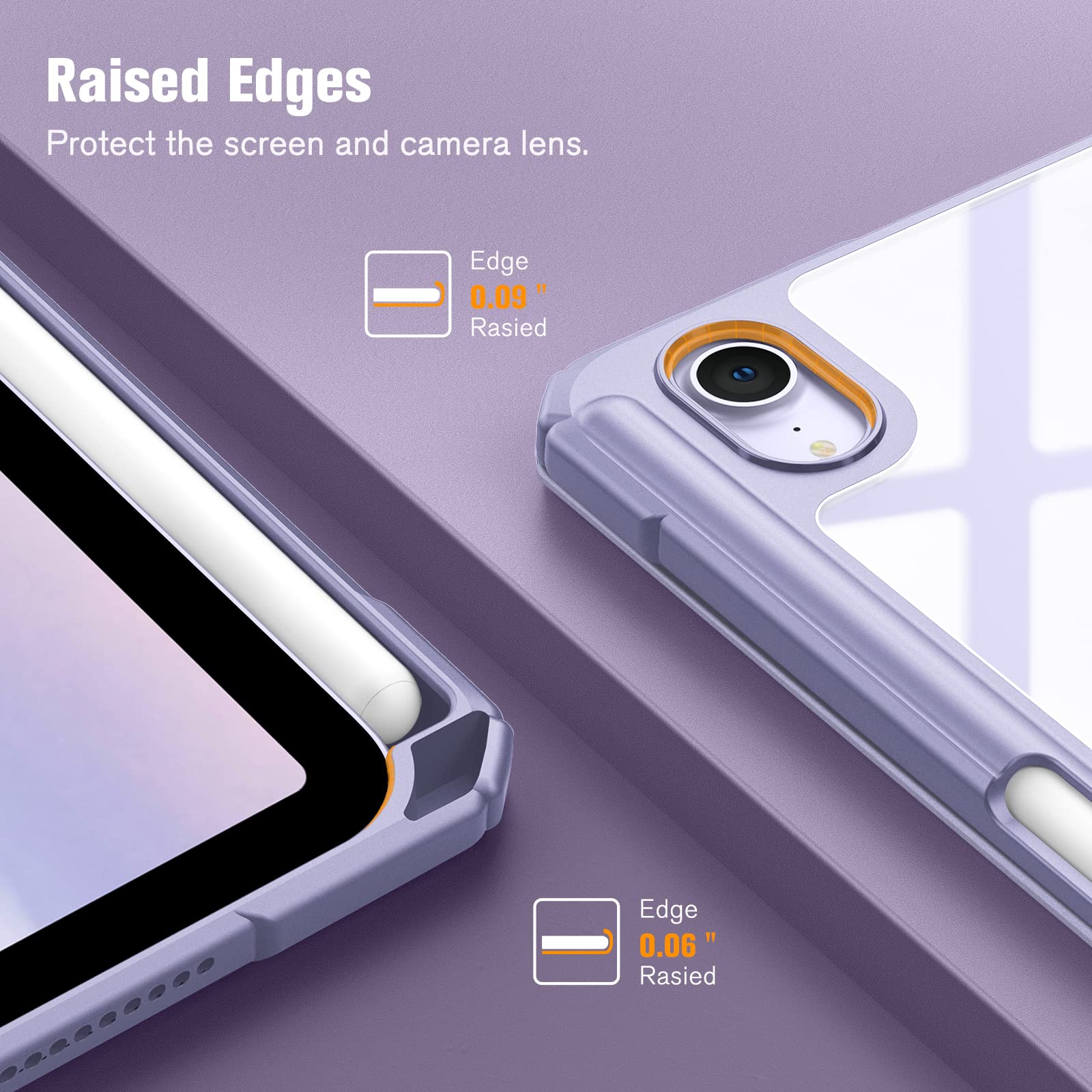 Fintie for iPad Mini 7 ケース (A17 Pro 2024) / iPad Mini 6 ケース 2021 8.3インチ 第7/6世代 透明バックカバー Pencil 収納可能 Pencil ワイヤレス充電対応 三つ折スタンド スリープ機能 軽量 薄型 傷つけ防止 PU合成レザー TPU (ライラックパープル)