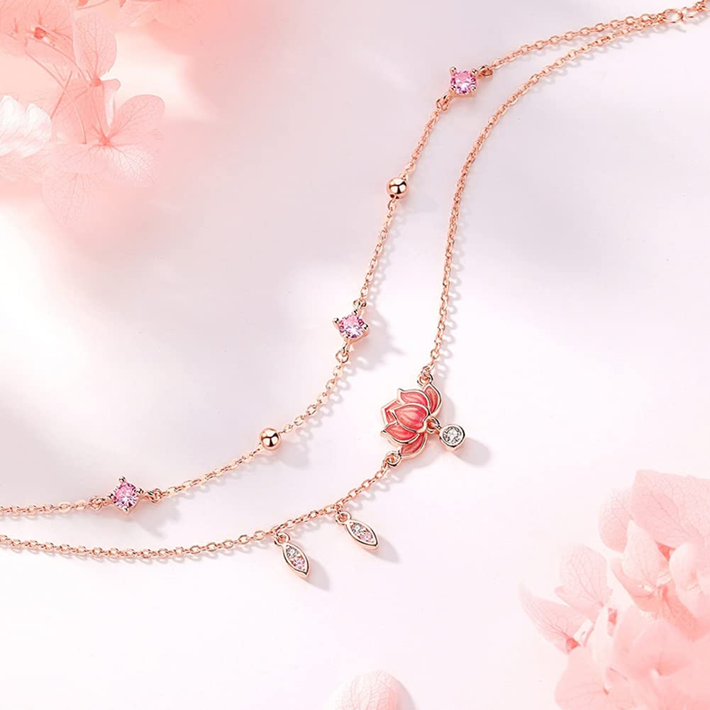 【Deelfel アンクレット】花アンクレット レディース 蓮華ペンダント フラワー 二連あずきチェーン 女性ジュエリー【素材】ステンレス ジルコニア