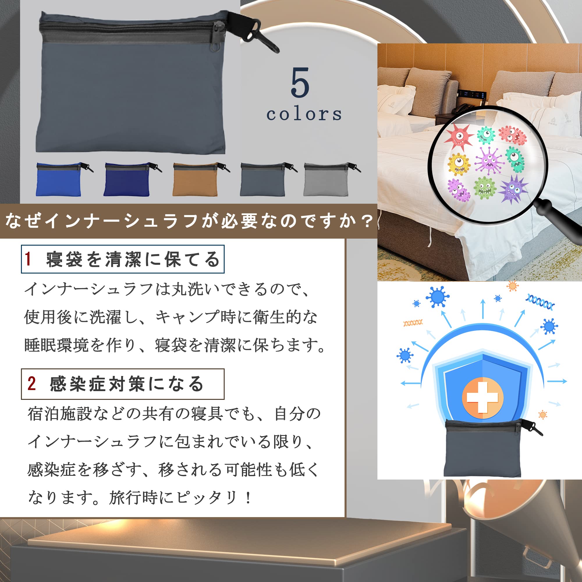 [CYCLETRACK] インナーシュラフ 寝袋 インナーシーツ 防災用品 キャンプ アウトドア コンパクト収納 軽量 旅行 地震災害対策 車中泊 丸洗い可能