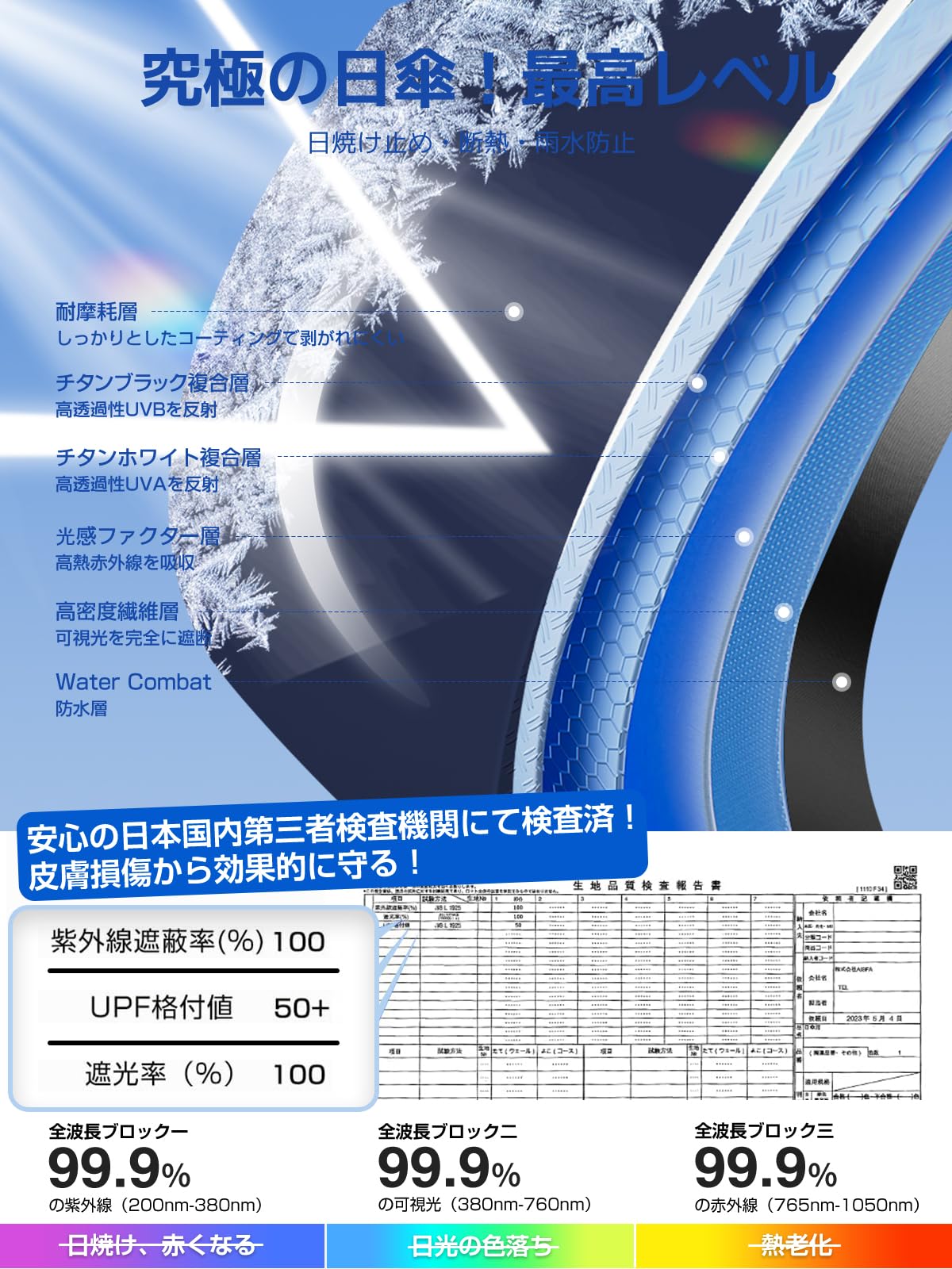 【JIS認証!100%遮光遮熱・UPF50++】新生チーム『日傘』が再び業界を席巻!ALwgreenのおりたたみ日傘は、一般の基準を100倍上回るJISの専門認証を獲得しています。この業界最高基準の日傘は、ドイツ輸入のRadi-Cool反射冷却素材を使用し、複数の保護層で100%の遮光・遮熱効果を実現。開いたら-15℃、傘の下は温度を下げる、『涼しいを持ち運ぶ』大人気の折畳み日傘です。99.99%の紫外線を遮断し、厳しい暑さや日焼けから肌を効果的に守ります!
