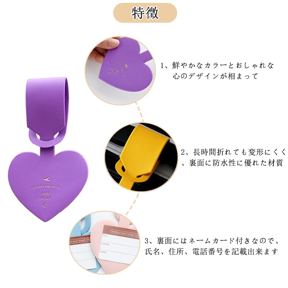 DFsucces ネームタグ 荷物タグ スーツケースタグ 6枚入り ハートの形 可愛い 取り外し簡単 超軽量 柔軟 丈夫 耐用 旅行タグ 防水タグ 紛失防止 旅行用 出張用 (B)