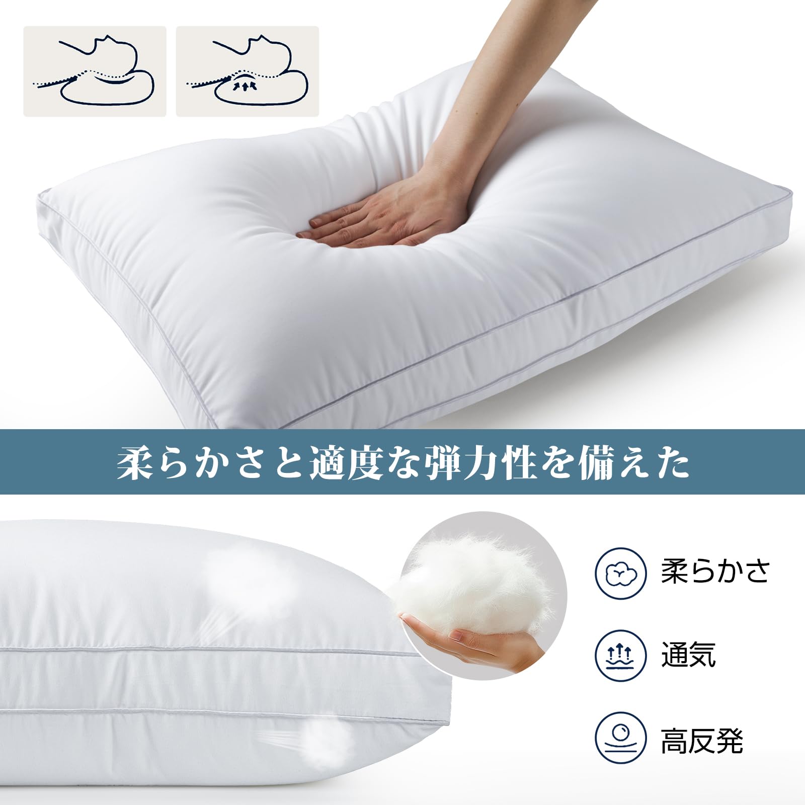 【ホテル枕の極上寝心地を自宅で】まるで高級ホテルのような快適さを、自宅で毎晩楽しめる枕です。上質ポリエステルを使用したこの枕は、頭から首までを優しく包み込み、身体に負担をかけない絶妙な設計。ふんわり感で高級ホテルのような贅沢な寝心地をご体感いただけるプレミアムな枕です。