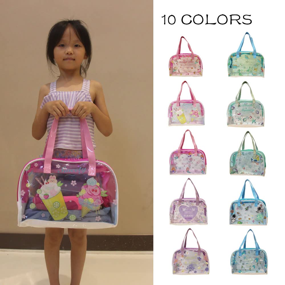 [MESRINA] プールバッグ ボストン 女の子 男の子 幼稚園 小学生 ボストンバッグ ビーチバッグ スイムバッグ ファスナー おしゃれ プリンセス 恐竜 (オーシャン ミント)