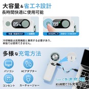 【6000mAh大容量内蔵、最大44時間持続使用可能&LED液晶画面表示】6000mAh大容量バッテリーを内蔵し、繰り返し充電して使用可能な充電式扇風機です。一回のフル充電で最大44時間まで連続送風可能、頼もしい電池持ちで一日中快適に。バッグや車に常備しておくと、いつでもどこでも涼しさを手に入れます。バッテリー残量がLED液晶画面に分かりやすく表示され、充電のタイミングを把握しやすいです。