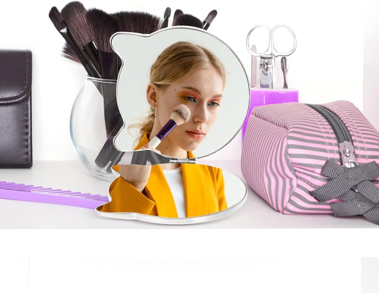 【特価在庫】ネコ匹 手鏡 コンパクト 鏡 おしゃれ 折りたたみミラー ステンレスミラー 両面鏡 プレゼント 女性 誕生日 (ネコ匹) おしゃれ 折りたたみミラー 割れない 両面鏡 ミラー ステンレス製ミラー 超軽量 人気 おしゃれ | GIGATERA