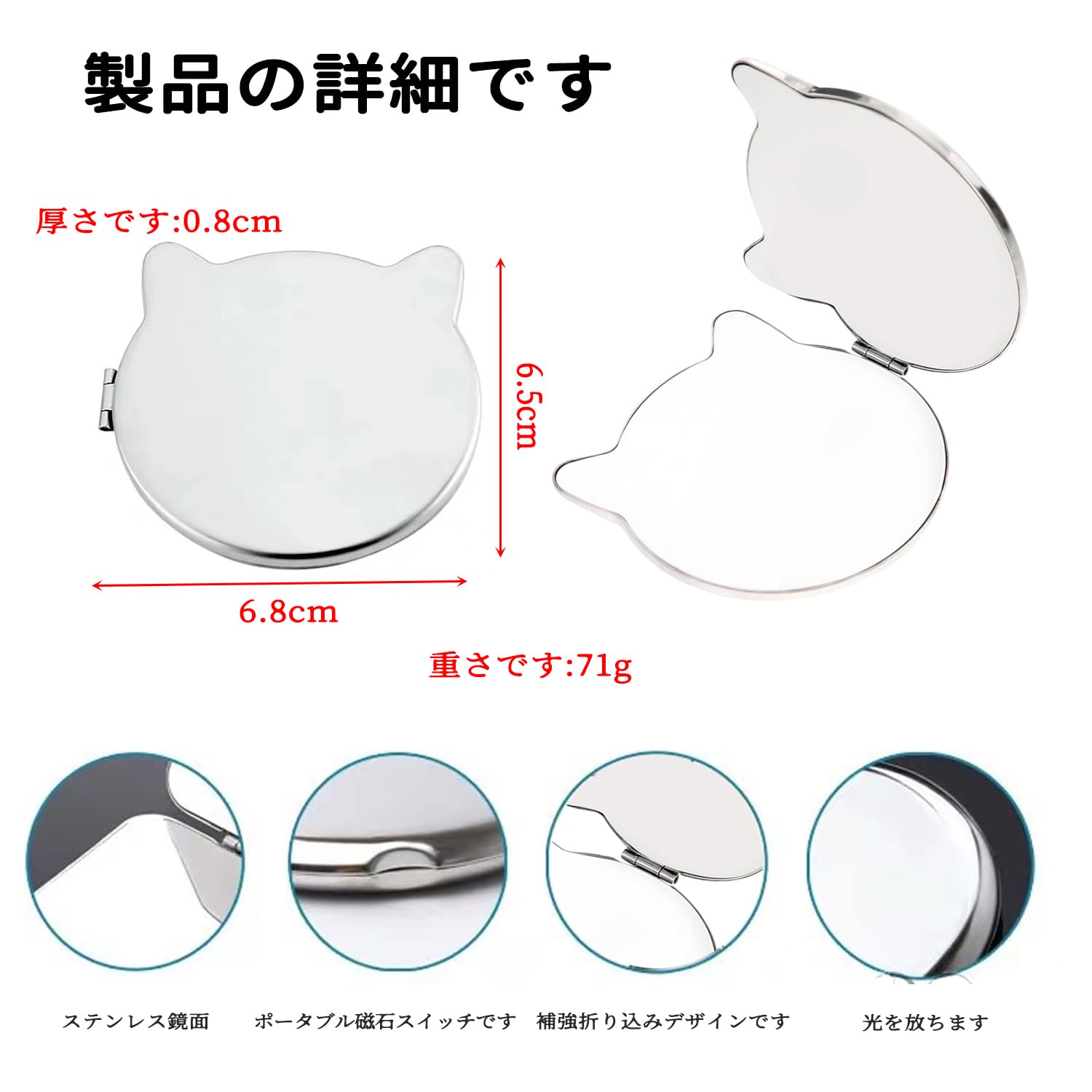 ネコ匹 手鏡 コンパクト 鏡 おしゃれ 折りたたみミラー ステンレスミラー 両面鏡 プレゼント 女性 誕生日 (ネコ匹) おしゃれ 折りたたみミラー 割れない 両面鏡 ミラー ステンレス製ミラー 超軽量 人気 おしゃれ