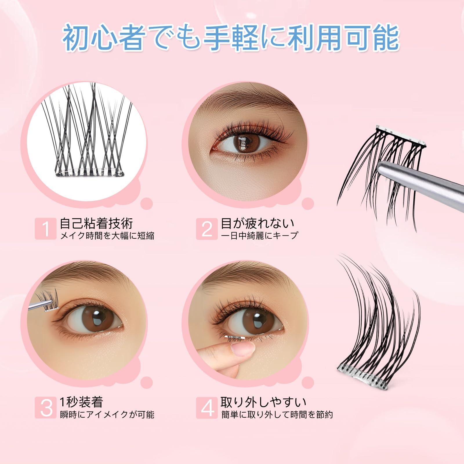 部分つけまつげ のり不要 EMEDA つけまつげ のり付き つけま ナチュラル 部分用つけまつ毛 自己粘着 透明軸 生活化粧 粘着力強い 軽量 快適 長持ち 初心者で簡単装着 72束(self-yw)