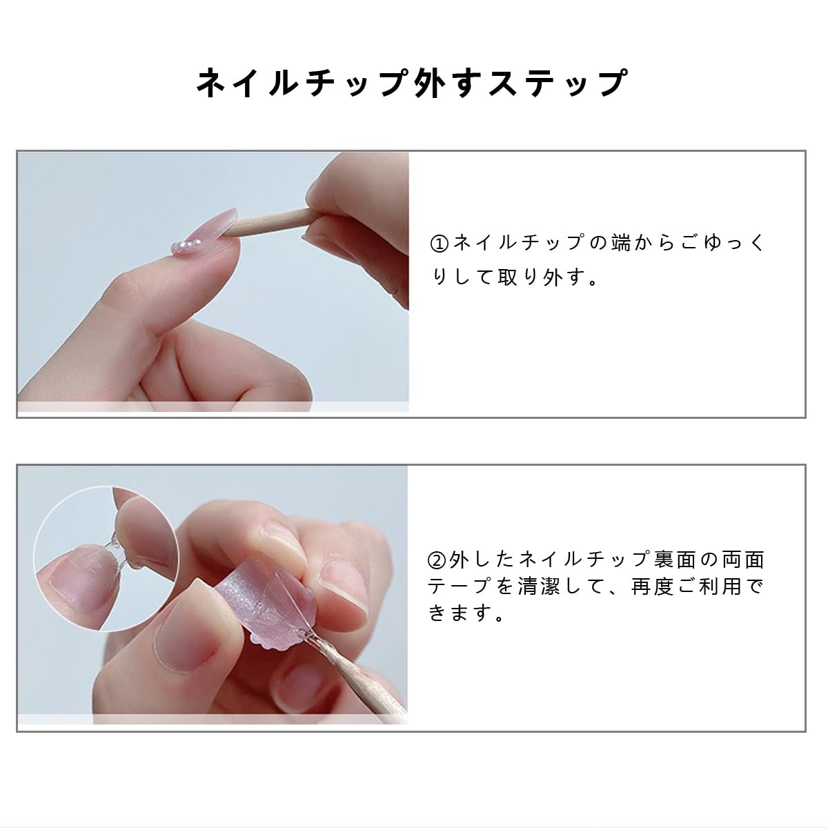 【届いたらすぐに使用できる】ネイルチップ(24枚・12別サイズ)/両面テープ2枚(48個)/爪やすり1本/木の棒1本など含んで、届いたらすぐに使用ができて、5-10分ぐらいはやく完成します。ネイルサロンに行くことが必要なく、お自宅で気軽的に綺麗なネイルが出来て、初心者でもお簡単に完成られます。