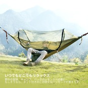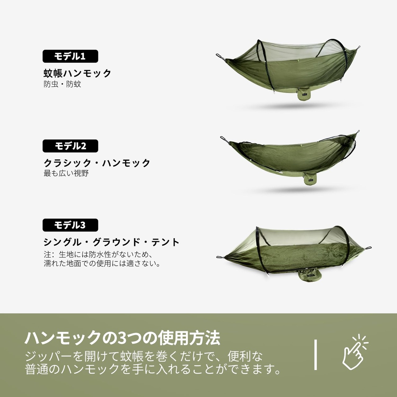 【人気】BTRWOR ハンモック モスキートネット付き 軽量 ポータブル ナイロン 260×140cm 耐荷重 300kg 自動蚊帳設定 キャンプ、インドア、アウトドアに適しています (アーミーグリーン) | GIGATERA