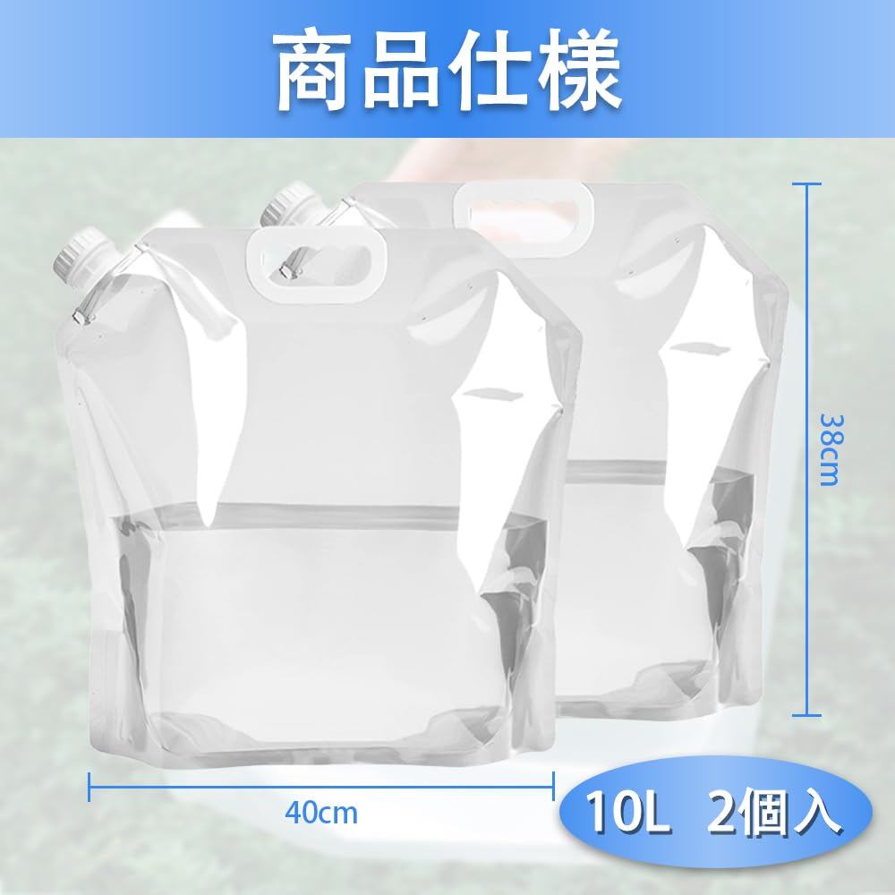 【商品内容】給水袋*2個セット(蛇口なし)、容量:約10L。アウトドアや非常時に備え、安心して水を携帯できます。