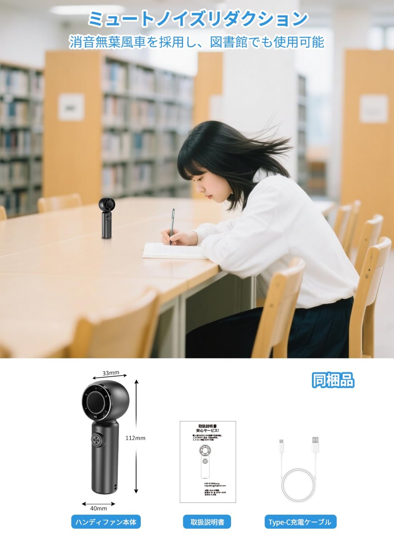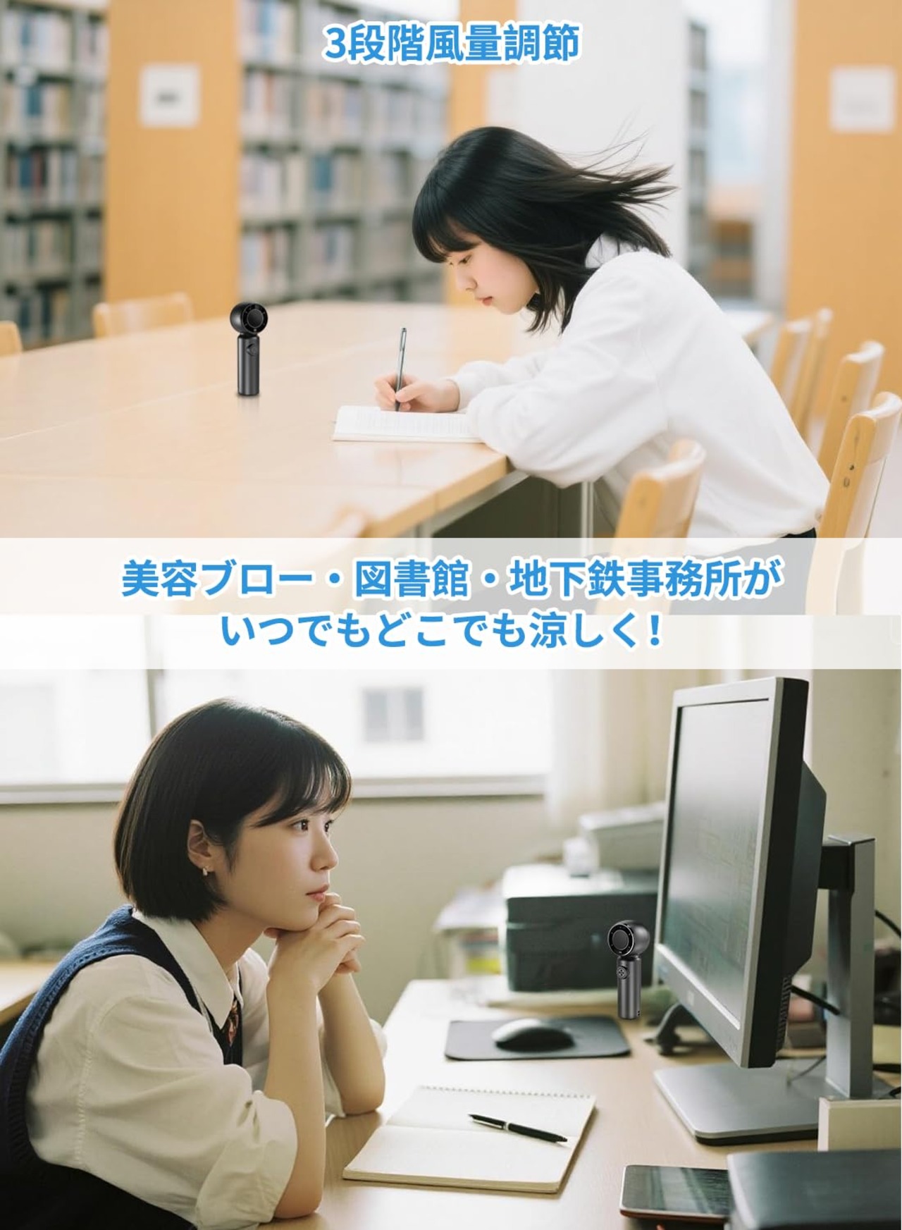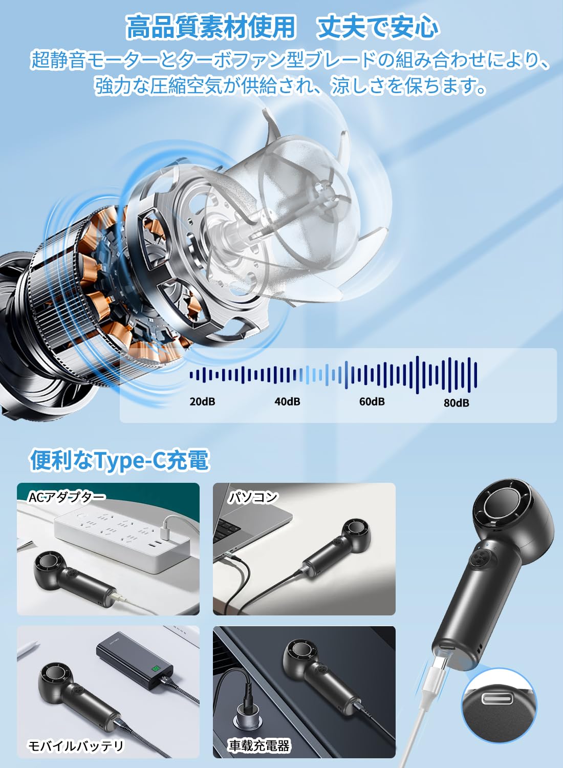 【高回転モーター&超軽量&静音設計】 高性能モーターでパワフル送風を実現しつつ、静音仕様で周囲に気を遣わずに使用可能。オフィスや図書館にも最適です。