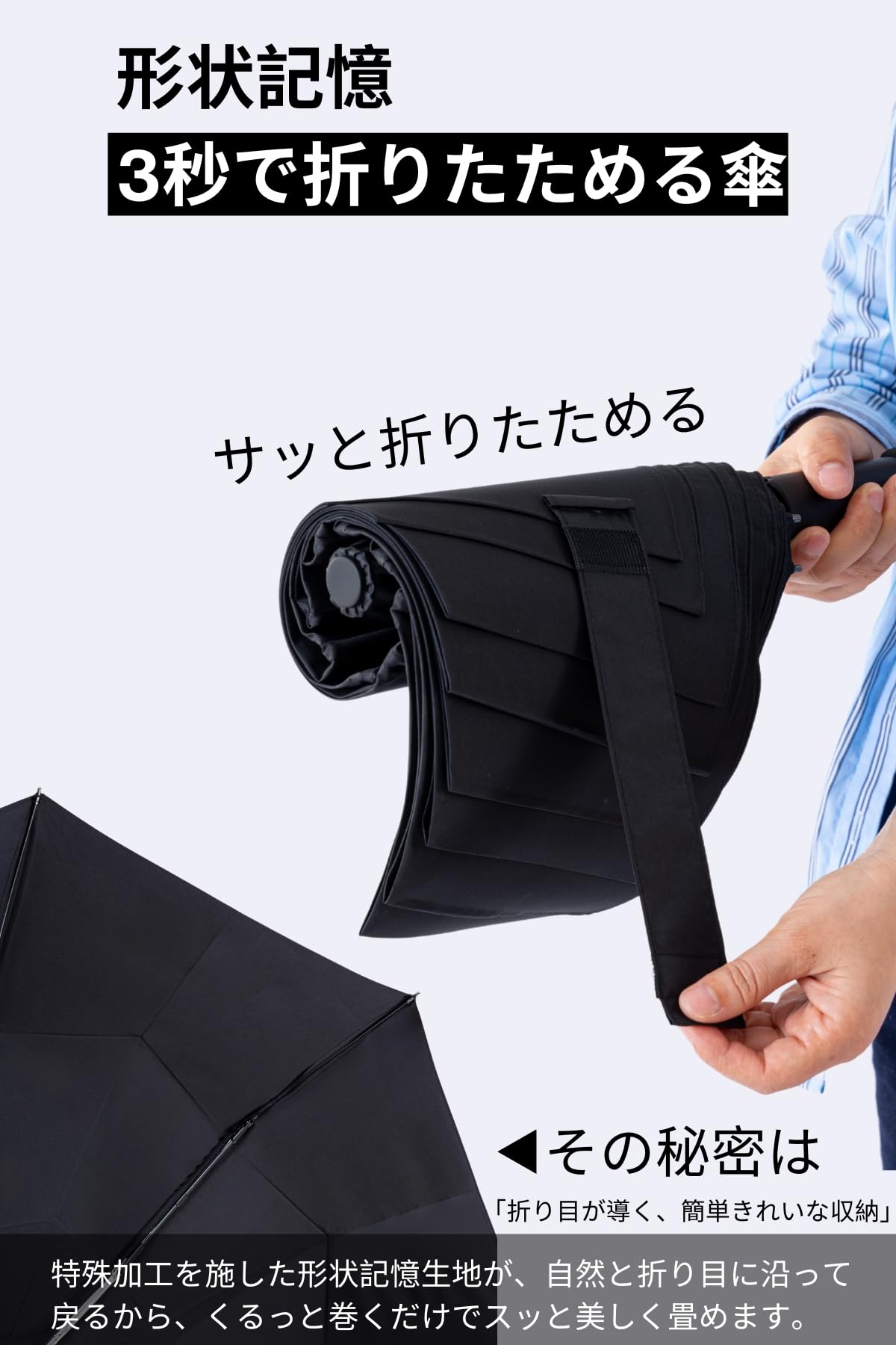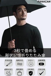 【永久形状記憶折りたたみ傘】これまでの折りたたみ傘にありがちな煩わしさを解消します。一般的な傘は、折りたたむのが面倒で、どうしてもぐちゃぐちゃになったり、スムーズにたためずにストレスを感じたことはありませんか?FANACAN傘は、独自の形状記憶生地3.0を採用しているため、折り目加工だけでは実現できない驚くほどの折りたたみやすさを実現。誰でも簡単に美しくたためるため、毎日の使用が格段に快適です。 さらに、一般的な形状記憶傘(折り目加工のみ)の効果が2?3年で薄れてしまうのに対し、FANACAN傘の形状記憶効果は永久的に持続します。つまり、一度購入すれば、買い替えの手間もなく、長期間その便利さを体感していただけます。 雨が降るたびに傘を使うのが面倒、たたむのが苦手…そんな悩みをFANACAN傘で解消しましょう。これ一つで、毎日の傘ライフがもっと快適になります!