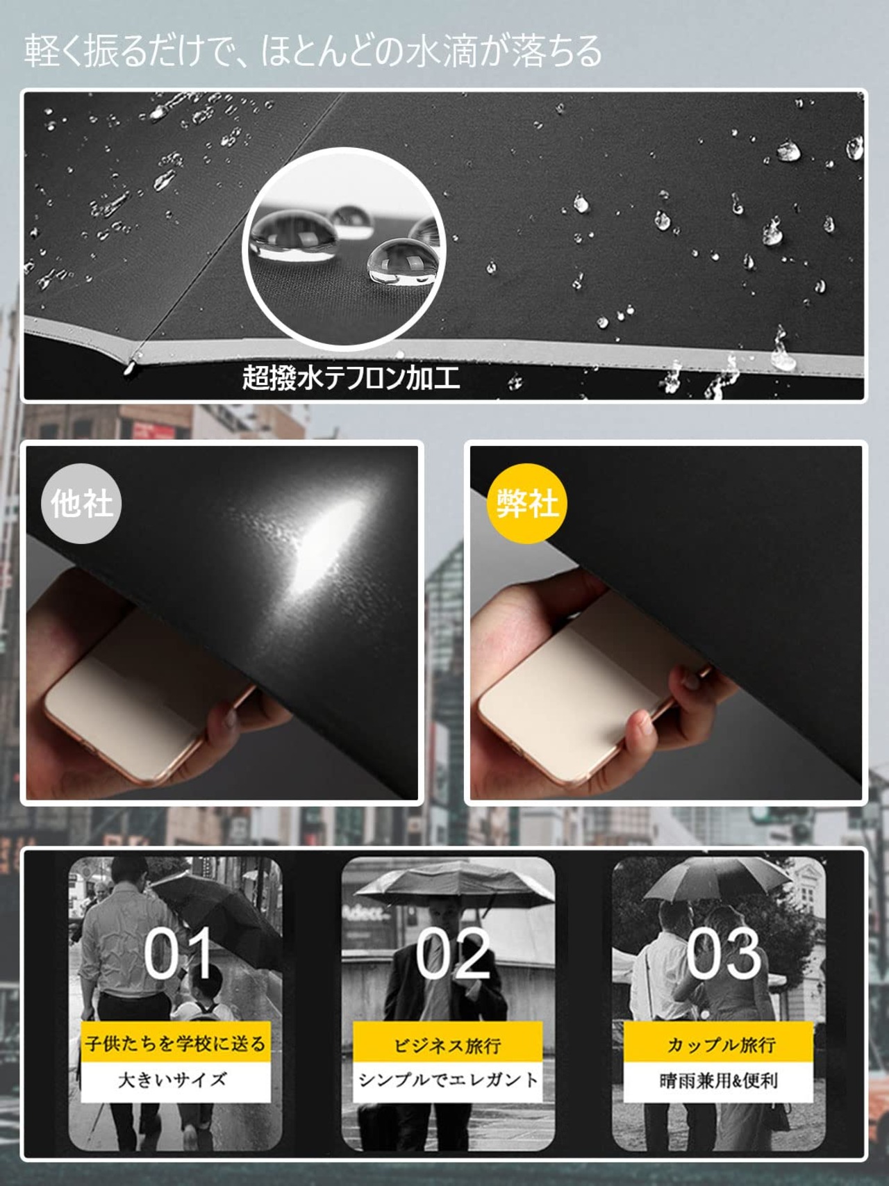 【濡れにくい!逆折り式傘】折りたたみ 傘 通常のメンズ折り畳み傘と違う畳んだ時に濡れた面が内側になるので衣服やバッグ、車内が濡れないのが逆折傘の魅力です。 ワンタッチ自動開閉で畳める、荷物を持っていてもらくらく、巻き取る時も手が濡れません。傘を差したり畳んだりが多い梅雨時期に大活躍。