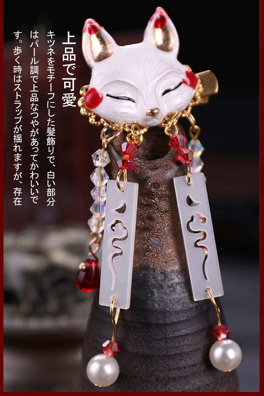 【数量限】YINKE 狐 髪飾り タッセル ヘアクリップ 漢服 和装 浴衣 和風 古風 二個セット ヘアアクセサリー 着物 ヘアアクセサリー パール 揺れる おしゃれ ヘアピン 写真撮影 | GIGATERA