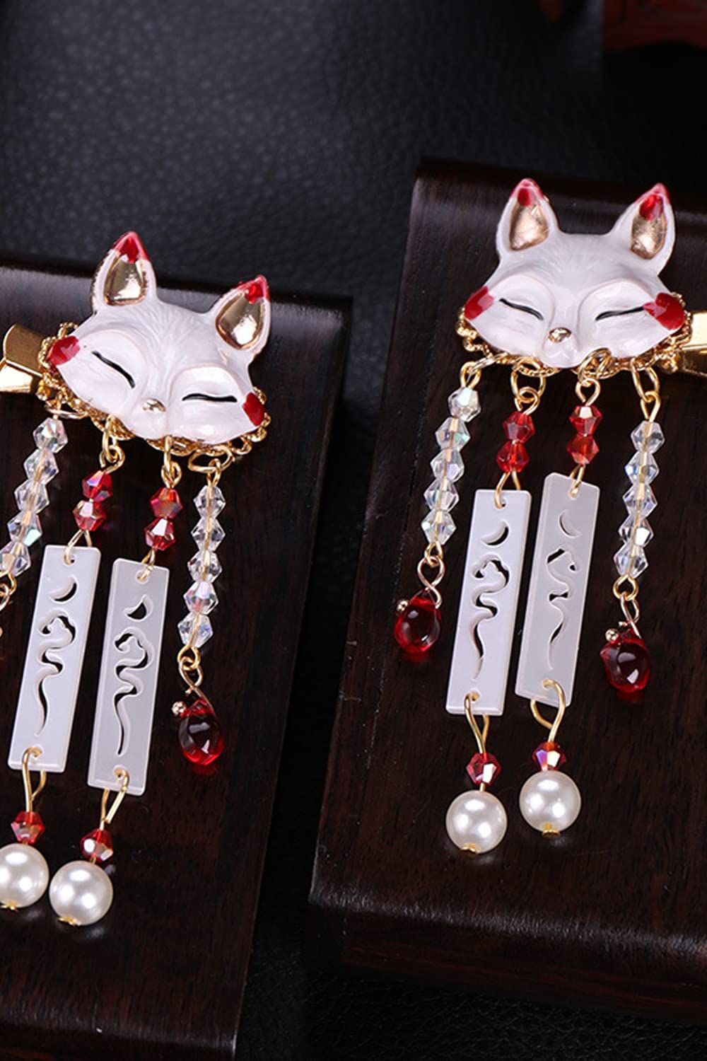 YINKE 狐 髪飾り タッセル ヘアクリップ 漢服 和装 浴衣 和風 古風 二個セット ヘアアクセサリー 着物 ヘアアクセサリー パール 揺れる おしゃれ ヘアピン 写真撮影