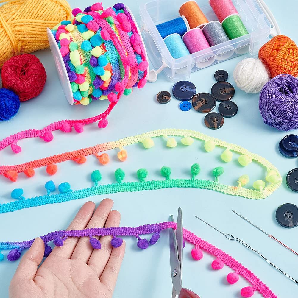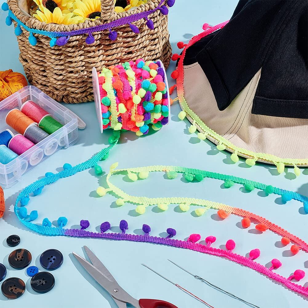 PH PandaHall ポンポン トリム レインボー リボン 長さ約20ヤード ポンポンレース 手芸パーツ 素材 カラフル 幅10mm 厚さ1mm ボールの直径約8mm ホームパーティー装飾 コスチューム クラフトソーイング