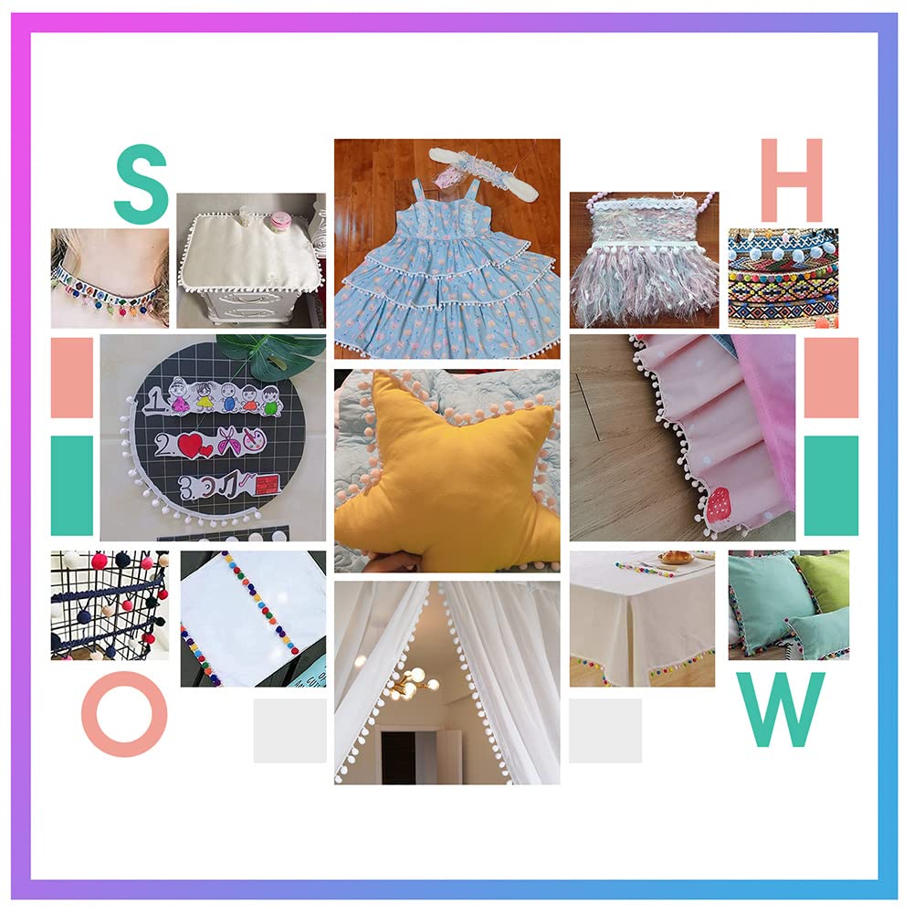 セット内容: 全体には、20ヤードのポンポンタッセル・ボールデコレーションが含まれています。 各ボールの幅は約0.4インチ(10mm)、厚さは1mmです。 ボールの直径は約8mmです。 保管や使用に便利なように、プラスチックのスプールに包まれています。