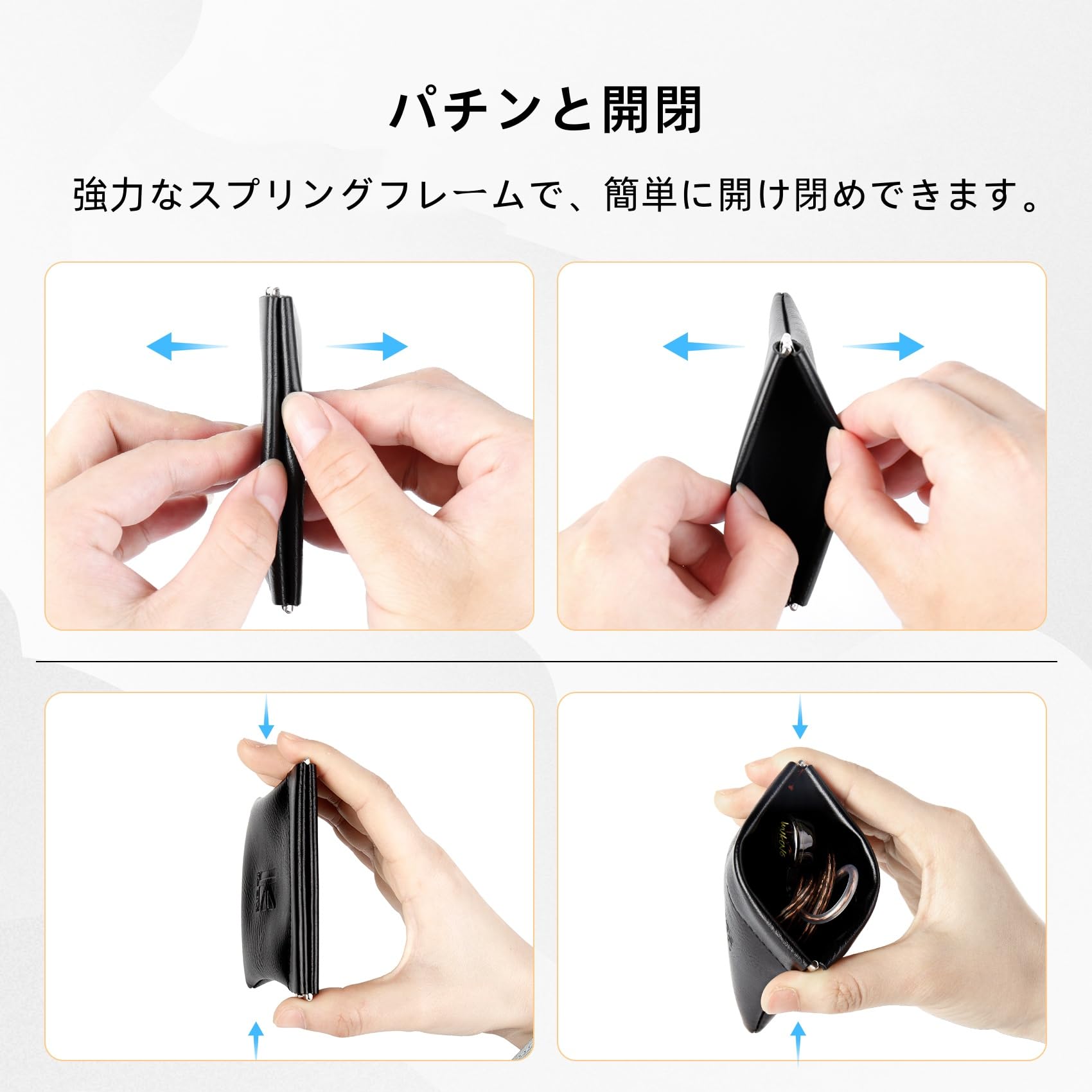 【収納に便利】入りロがスプリングになっていて指で挟むと開く仕組みです。開口部の両端に外側から圧力をかけると、開口部の金属棒が曲がってポケットが開き、離すとポケットが閉じます。