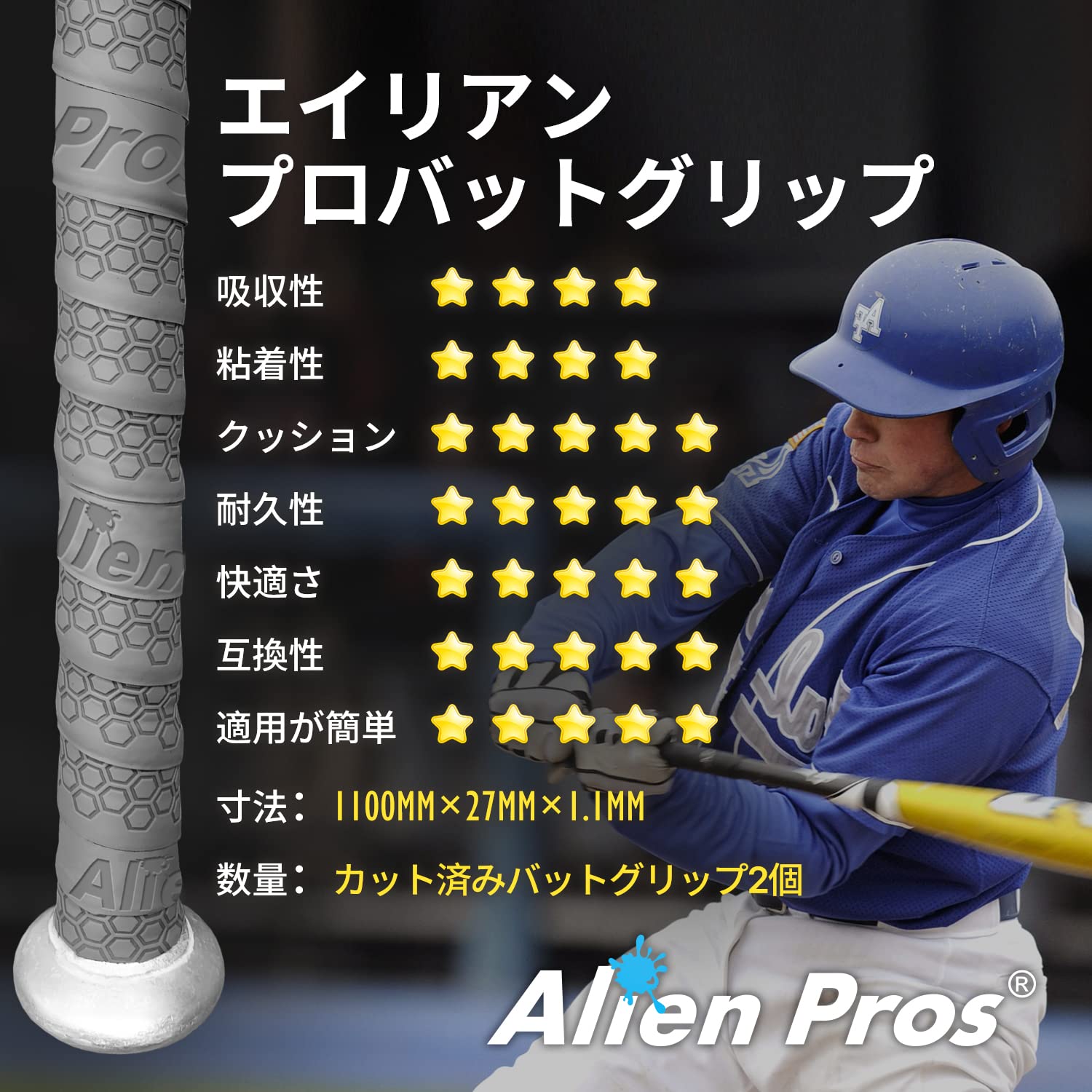 ALIEN PROS 野球用バットグリップテープ 1.1 MM(2パック) - プレカットされたプロ品質のバットテープ - 壮大なホームランのためにバットを包みましょう - 古い野球バットグリップのための交換品