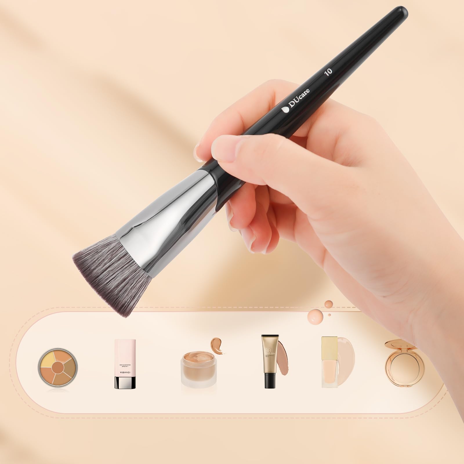 DUcare ドゥケア ファンデーションブラシ シェーディングブラシ 楕円形 メイクブラシ フェイスブラシ 化粧筆 フラットトップタイプ 高級のタクロンを使用 時短ベースメイクへ V10