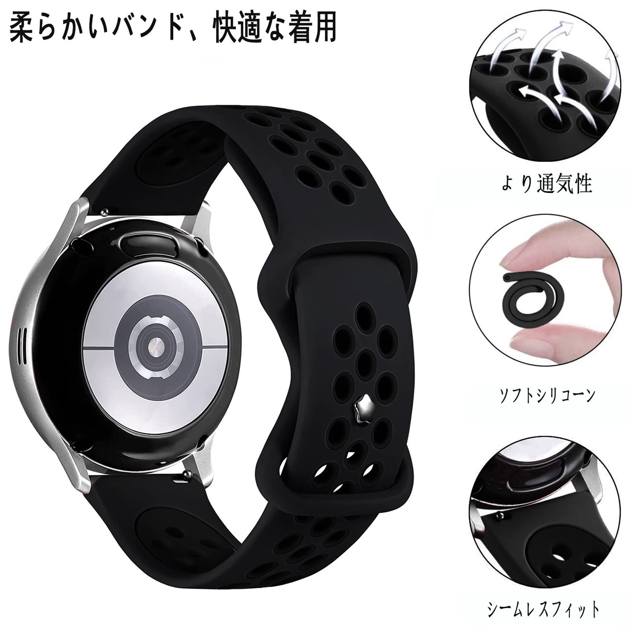 【セール】[AGUPERFIT] 時計バンド 20mm 22mm クイックリリースベルト 柔らかい軽さ通気性が良のシリコンスポーツストラップ 腕時計とスマートウォッチ 替えバンド (22mm L ブラック/ブラック) | GIGATERA