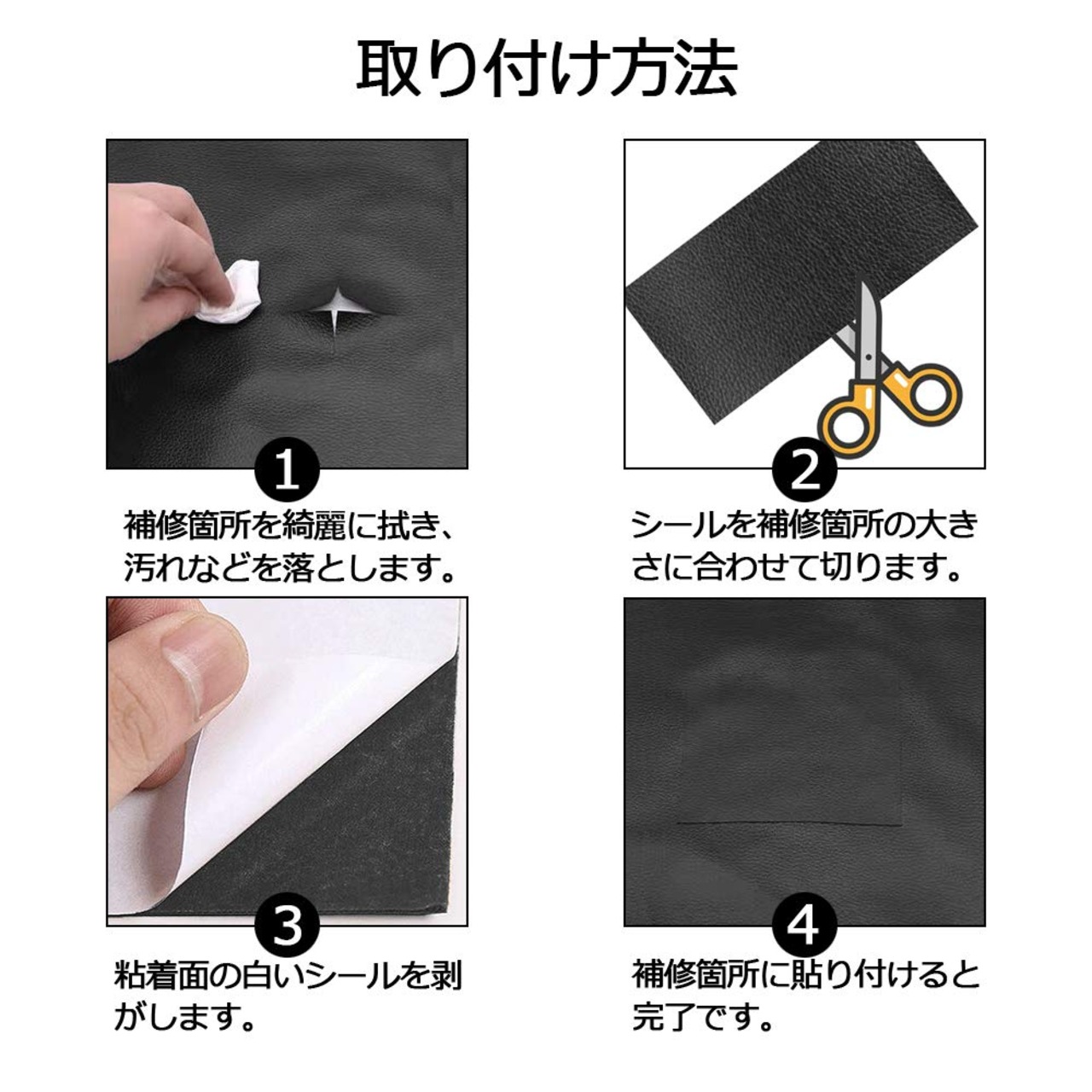 レザー補修シート 5枚セット 20*10cm 合皮補修シート シールタイプ レザー シール 貼る 補修テープ ソファー/財布/バッグ修理用 ブラック