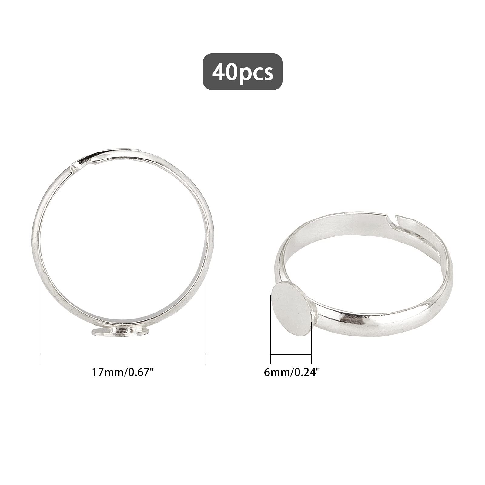 【特価】PH PandaHall 40個 リングパーツ リング 台座 6mm 平皿付き シルバー 調節可能 指輪用ベース 真ちゅう製 丸型指輪トレイ 指輪作り ハンドメイド アクセサリーパーツ 材料 | GIGATERA