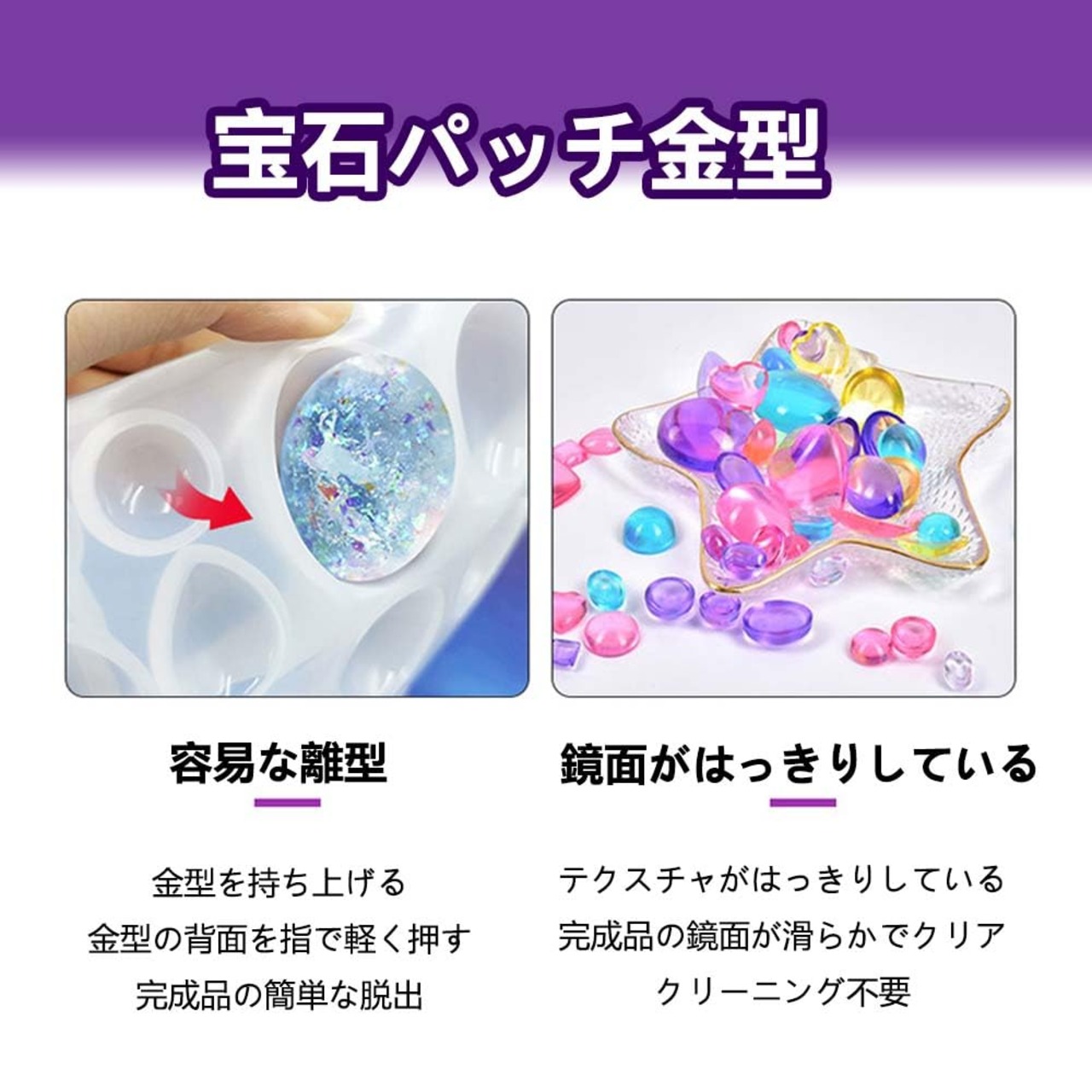 【素材】柔らかく、しっかりしたシリコーン素材で、繰り返し使えます。弾力のあるシリコンモールドなので、レジンや樹脂が固まった後、スムーズに型から外すことができます。