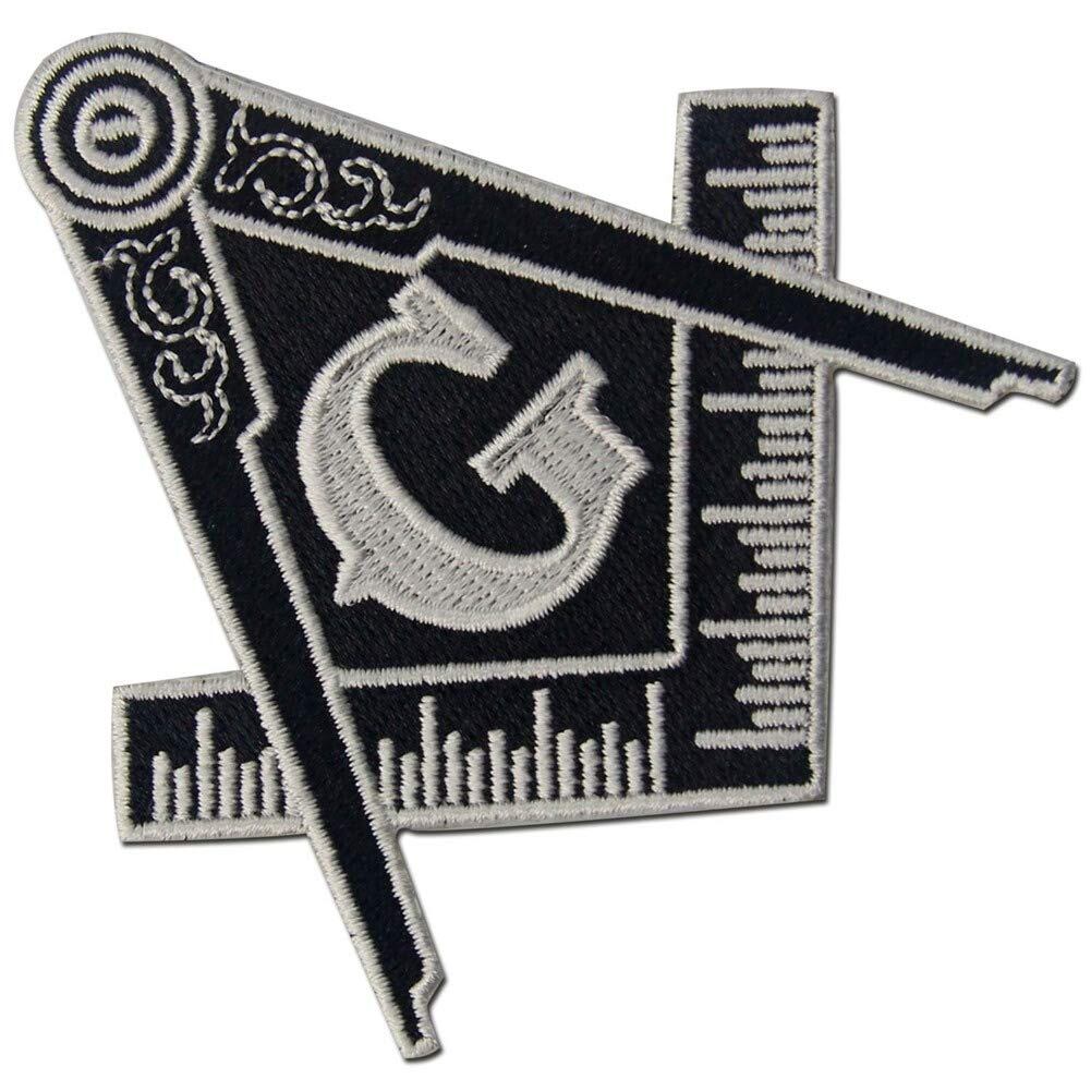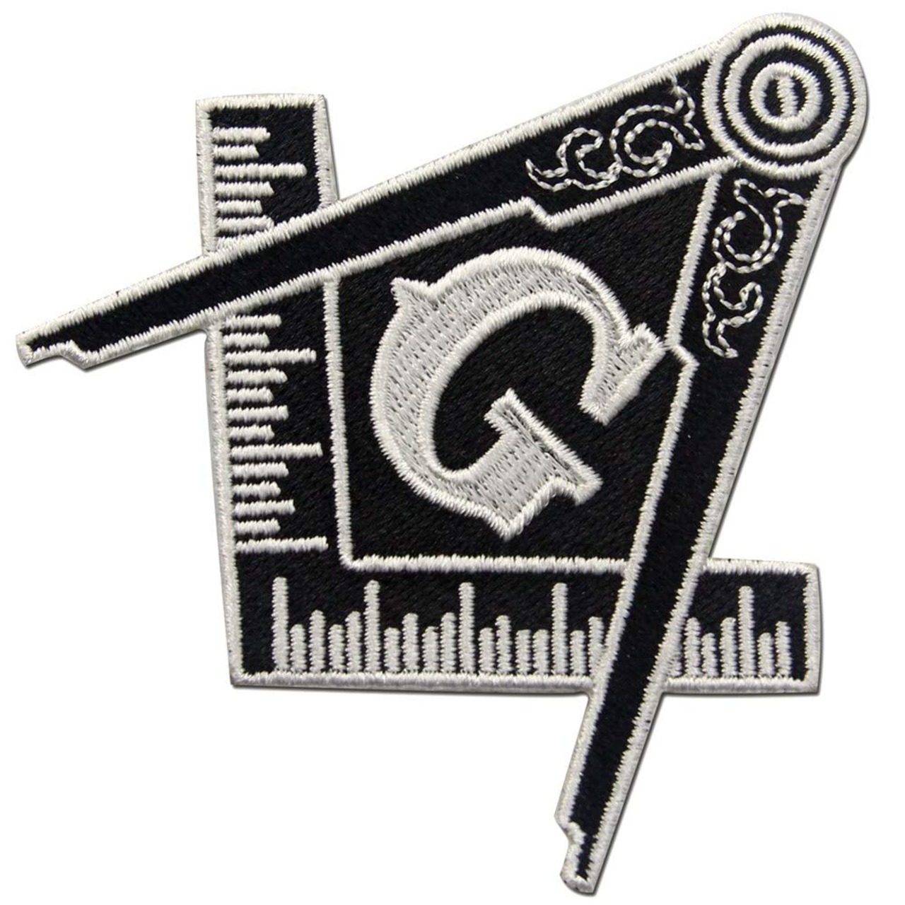フリーメーソンのロゴ刺繍入りアイロン貼り付け/縫い付けワッペン,黒と白