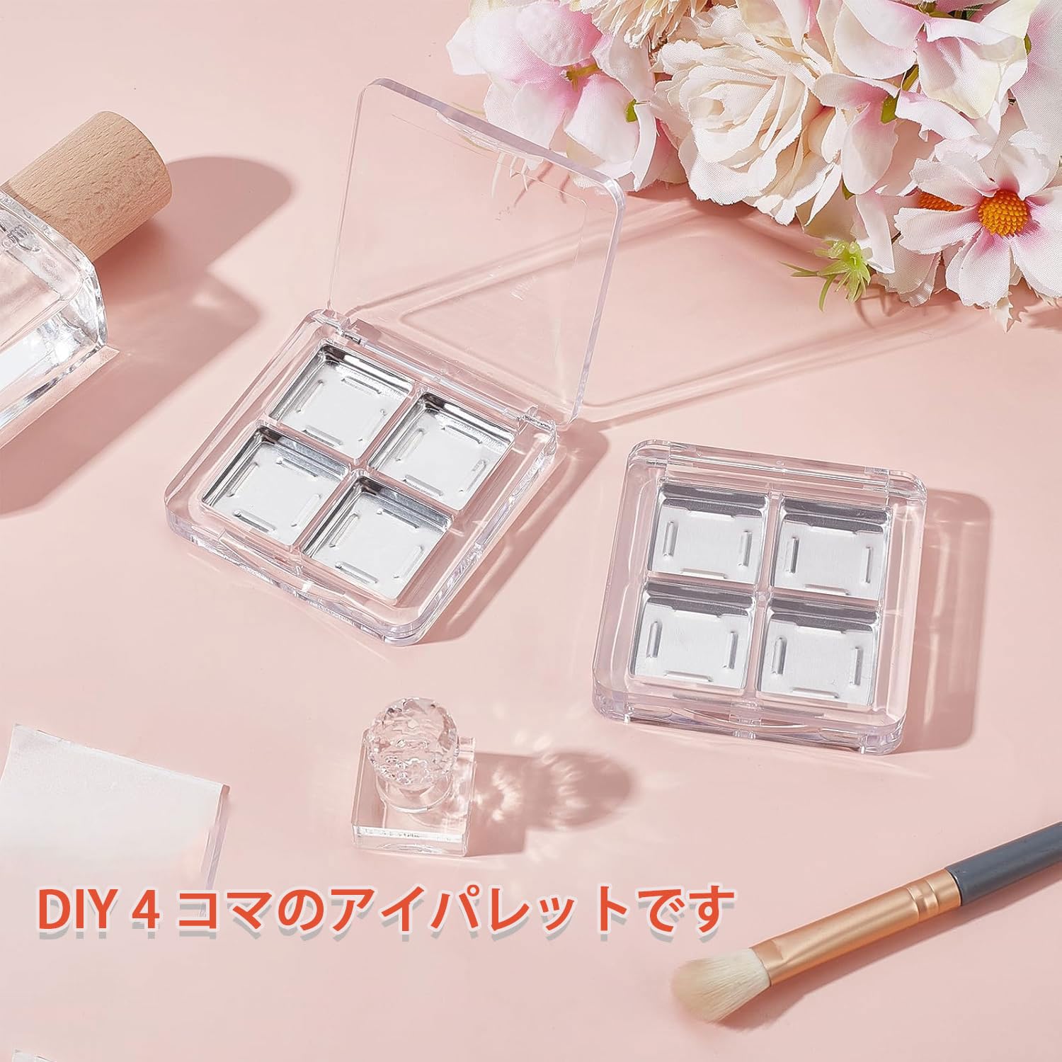 【パッケージ内容】空のアイシャドウパレット2個セット、4スロットタイプで、サイズ:60.8×60.8×10.9mm。