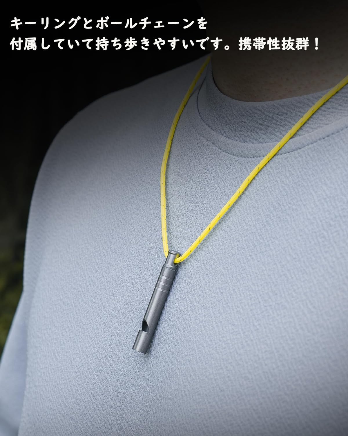 チタンで軽くて身体的な負担が少ないです。このホイッスルは携帯電話のストラップやキーホルダーなどに取り付け安くて携帯性は最高です。