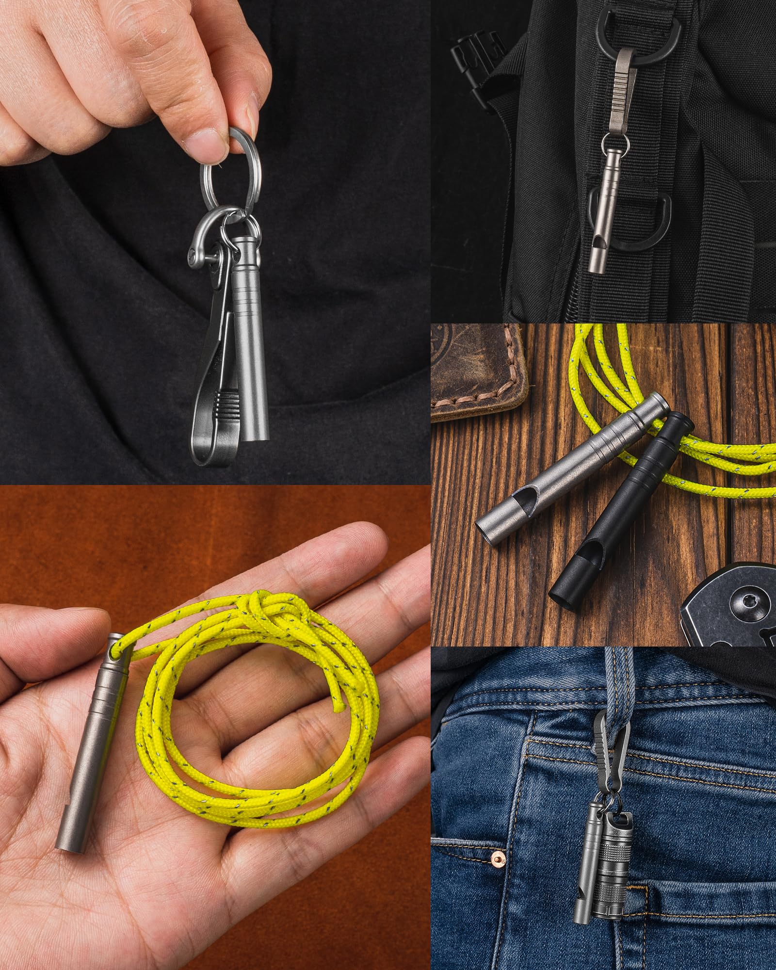包装内容:チタン製ホイッスル*4+ ロープ*4 (約70cm)